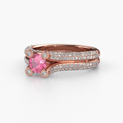 Dieser Verlobungsring aus 14 Karat Roségold mit 5 mm Pink Saphir heißt Stefanie 2. Liebt deine Freundin exklusiven Schmuck? Oder möchten Sie ihr zeigen, dass sie den besten Schmuck verdient? Dieser Roségold Ring ist pure Handwerkskunst - Liebe und Leidenschaft kombiniert mit den neuesten Techniken, die in perfekter Harmonie zusammentreffen. Es erfordert ein scharfes Auge, Geduld und eine geschickte Hand, um diesen Ring in Perfektion zu formen. Genau der richtige Job für unsere erfahrenen Juweliere! Die Pink Saphir-Fassung verleiht diesem Roségold gespaltene Bänder Ring eine extra glänzende Erscheinung. Passen Sie den Stil des Rings nach Ihren Wünschen und mit einer großen Auswahl an Edelmetallen und Edelsteinen an, die Sie selbst auswählen können. So kreieren Sie einen einzigartigen Ring für die exklusivste Frau Ihres Lebens! Jedes Schmuckstück wird von unseren Meister-Goldschmieden in unserem eigenen Studio für Sie gefertigt.Nach Erhalt Ihrer Bestellung beginnen unsere Goldschmiede mit Leidenschaft den kreativen Prozess und fertigen Ihren Verlobungsring in unserem eigenen Studio. Da wir keine großen Lager haben, werden diese Kosten nicht an Sie weitergegeben. Unsere Preisgestaltung ist der Beweis dafür! Wir bieten Schmuck zum niedrigsten Preis, garantiert.Verschiedene Arten von neuen Ringen werden täglich von unserem Team angefertigt. Vielleicht haben Sie irgendwo einen Pavé Solitär Verlobungsring gefunden. Einen, den Sie Ihrem Liebsten schenken möchten. Bitte zögern Sie nicht, unseren Schmuckdesignern Ihre Gedanken und Ihr Design zu zeigen. Wir würden gerne Ihr Design in einen einzigartige Verlobungsring verwandeln. Sie können die Entwicklungen Ihres Ringdesigns verfolgen, da wir sehr detaillierte 3D-Zeichnungen verwenden. Darüber hinaus können Sie einen Dummy des Designs bestellen. Ein Dummy ist ein Kunststoffring, der nach Ihrem Ringdesign gestaltet werden kann. Sie können ihn anprobieren und prüfen, ob der Verlobungsring Ihren Vorstellungen entspricht. Wir senden Ihnen gerne ein unverbindliches Angebot zu einem fairen Preis/Leistungsverhältnis. Das Angebot wird Sie angesichts der Qualität des Rings und der Edelsteine verblüffen.Um es einfacher zu machen, bieten wir eine kostenlose 30-tägige Rücksendung.