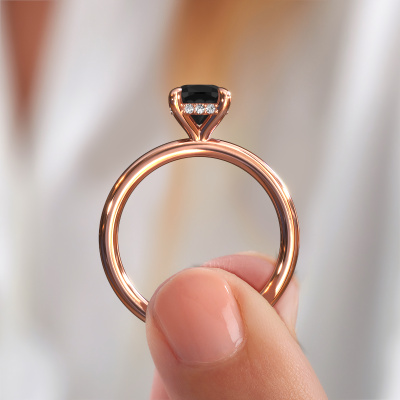 Dieser Verlobungsring aus 14 Karat Roségold heißt Simone CUS 2. Suchen Sie nach einem einzigartigen Roségold Verlobungsring mit einem trendigen Aussehen? Dann ist dieser Ring mit Schwarz Diamant das Richtige für Sie. Einfach nach Ihren Wünschen anpassen. Dieser einzigartige Verlobungsring ist mit exquisiten Schwarz Diamant besetzt. Er wurde sorgfältig ausgewählt, weil Ihr graziöse Verlobungsring nur mit dem schönsten Edelstein gekrönt werden darf. Unser erfahrener Juwelier kreiert Ihren Ring in unserem eigenen Studio, wo der Schwarz Diamant mit großer Sorgfalt eingefasst wird. Der Ring wird dann bearbeitet und poliert, um ihm einen zusätzlichen Glanz zu verleihen. Der perfekte Ring für Ihre bessere Hälfte!Durch die Kombination modernster Technik mit uralter Handwerkskunst können wir alle Verlobungsringe in unserem eigenen Studio anfertigen. Jedes Schmuckstück wird auf Anfrage gefertigt. Das ist vorteilhaft, weil wir Ihnen dadurch einen Preis anbieten können, den Sie nirgendwo anders finden.Unser Team fügt unserer Online-Kollektion täglich neue Designs hinzu. Unsere Designer und Goldschmiede arbeiten zusammen, um das beste Design zu kreieren. Wir bemühen uns, eine vielfältige Kollektion von Schmuckstücken anzubieten. Vielleicht haben Sie ein bestimmtes Design im Sinn. Eines, dass Sie irgendwo gesehen haben. Gerne geben wir Ihnen eine kostenlose Beratung. Wir machen Ihnen ein Angebot, basierend auf einem fairen Preis/Leistungsverhältnis, das Sie verblüffen wird.Um es einfacher zu machen, bieten wir eine kostenlose 30-tägige Rücksendung.
