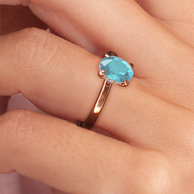 Dieser Verlobungsring aus 14 Karat Roségold heißt Simone OVL 2. Suchen Sie nach einem einzigartigen Roségold Verlobungsring mit einem trendigen Aussehen? Dann ist dieser Ring mit Blau Topas das Richtige für Sie. Einfach nach Ihren Wünschen anpassen. Dieser moderne Verlobungsring ist mit exquisiten Blau Topas besetzt. Er wurde sorgfältig ausgewählt, weil Ihr graziöse Verlobungsring nur mit dem schönsten Edelstein gekrönt werden darf. Unser erfahrener Juwelier kreiert Ihren Ring in unserem eigenen Studio, wo der Blau Topas mit großer Sorgfalt eingefasst wird. Der Ring wird dann bearbeitet und poliert, um ihm einen zusätzlichen Glanz zu verleihen. Der perfekte Ring für Ihre bessere Hälfte!Da wir unsere eigenen Ringe entwerfen und liefern, können wir Ihnen einen Verlobungsring zu einem Preis anbieten, den Sie nirgendwo anders finden. Ein Ring wird auf Bestellung angefertigt, wodurch kein überschüssiges Material anfällt. So können wir Ihnen ein gutes Angebot zum besten Preis machen. Wir verstehen, dass es sich riskant anfühlt, Ihren Verlobungsring online zu kaufen. Jedoch helfen wir Ihnen gerne beim Designprozess unter Berücksichtigung Ihres Budgets.Haben Sie einen bestimmten Ring im Sinn? Eines, dass Sie irgendwo gesehen haben. Bitte zögern Sie nicht, uns zu sagen, was Sie wollen und wir werden Ihr Design in einen Einzigartigen Verlobungsring verwandeln. Sie können die Entwicklungen Ihres Ringdesigns verfolgen, da wir 3D-Zeichnungen verwenden. Das gibt Ihnen eine realistische Vorschau Ihres Designs. Wir senden Ihnen gerne ein unverbindliches Angebot zu einem fairen Preis/Leistungsverhältnis. Es wird Sie erstaunen.Um es einfacher zu machen, bieten wir eine kostenlose 30-tägige Rücksendung.