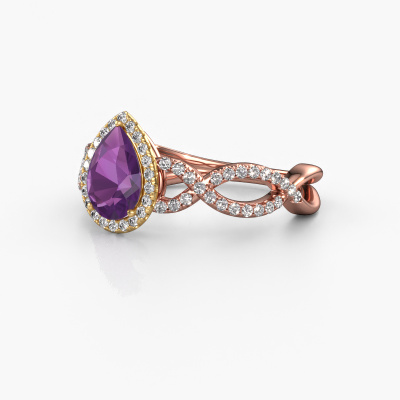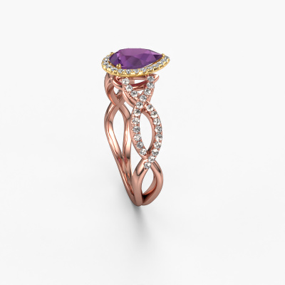 Dieser Verlobungsring aus 14 Karat Roségold mit 7x5 mm Amethyst heißt Dionne pear. Liebt deine Freundin exklusiven Schmuck? Oder möchten Sie ihr zeigen, dass sie den besten Schmuck verdient? Dieser Roségold Ring ist pure Handwerkskunst - Liebe und Leidenschaft kombiniert mit den neuesten Techniken, die in perfekter Harmonie zusammentreffen. Es erfordert ein scharfes Auge, Geduld und eine geschickte Hand, um diesen Ring in Perfektion zu formen. Genau der richtige Job für unsere erfahrenen Juweliere! Die Amethysten-Fassung verleiht diesem Roségold Drehungen Ring eine extra glänzende Erscheinung. Passen Sie den Stil des Rings nach Ihren Wünschen und mit einer großen Auswahl an Edelmetallen und Edelsteinen an, die Sie selbst auswählen können. So kreieren Sie einen einzigartigen Ring für die exklusivste Frau Ihres Lebens! Jedes Schmuckstück ist um Ihrem Finger Glanz zu verleihen. Jeder Ring wird von unseren Goldschmieden liebevoll von Hand gefertigt.Haben Sie ein bestimmtes Budget? Sie können uns gerne kontaktieren, damit wir Ihre Optionen besprechen können. Wir bieten unsere Verlobungsringe zum garantiert besten Preis, denn wir fertigen sie auf Bestellung. Solche Preise finden Sie nirgendwo anders!Verschiedene Arten von neuen Ringen werden täglich von unserem Team angefertigt. Vielleicht haben Sie irgendwo einen Pavé Solitär Verlobungsring gefunden. Einen, den Sie Ihrem Liebsten schenken möchten. Bitte zögern Sie nicht, unseren Schmuckdesignern Ihre Gedanken und Ihr Design zu zeigen. Wir würden gerne Ihr Design in einen exklusive Verlobungsring verwandeln. Sie können die Entwicklungen Ihres Ringdesigns verfolgen, da wir sehr detaillierte 3D-Zeichnungen verwenden. Darüber hinaus können Sie einen Dummy des Designs bestellen. Ein Dummy ist ein Kunststoffring, der nach Ihrem Ringdesign gestaltet werden kann. Sie können ihn anprobieren und prüfen, ob der Verlobungsring Ihren Vorstellungen entspricht. Wir senden Ihnen gerne ein unverbindliches Angebot zu einem fairen Preis/Leistungsverhältnis. Das Angebot wird Sie angesichts der Qualität des Rings und der Edelsteine verblüffen.Um es einfacher zu machen, bieten wir eine kostenlose 30-tägige Rücksendung.