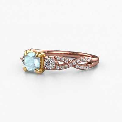 Der oben gezeigte Roségold Verlobungsring wird Marilou CUS genannt. Es ist ein 3-stone Ring, da er einen zentralen Edelstein und ein Band mit Pavé-Fassung hat. Der traditionell 3-stone Verlobungsring ist in der Kombination 14 Karat Roségold mit Gold und ist mit einem cussion 5 mm Aquamarin-Mittelstein besetzt und das Band hat eine Pavé-Fassung mit Diamanten. Jedes Schmuckstück ist einzigartig in jeder Hinsicht! Einfach nach Ihren Wünschen anzupassen. Um den zentralen Stein noch mehr zu betonen, hat das Band eine Pavé-Fassung mit weiteren Aquamarin. Durch die offenen Krappen kann das Licht aus mehreren Winkeln auf den Aquamarin treffen und der Aquamarin-Ring funkelt noch mehr. Das obere Foto zeigt die leidenschaftlich handgefertigten Details des Rings. Die hohe Positionierung der Mittelstein ist ein echter Blickfang. Der perfekte Verlobungsring für das Kronjuwel Ihres Lebens!Durch die Kombination modernster Technik mit uralter Handwerkskunst können wir alle Verlobungsringe in unserem eigenen Studio anfertigen. Jedes Schmuckstück wird auf Anfrage gefertigt. Das ist vorteilhaft, weil wir Ihnen dadurch einen Preis anbieten können, den Sie nirgendwo anders finden.Unser Team fügt unserer Online-Kollektion täglich neue Designs hinzu. Unsere Designer und Goldschmiede arbeiten zusammen, um das beste Design zu kreieren. Wir bemühen uns, eine vielfältige Kollektion von Schmuckstücken anzubieten. Vielleicht haben Sie ein bestimmtes Design im Sinn. Eines, dass Sie irgendwo gesehen haben. Gerne geben wir Ihnen eine kostenlose Beratung. Wir machen Ihnen ein Angebot, basierend auf einem fairen Preis/Leistungsverhältnis, das Sie verblüffen wird.Um es einfacher zu machen, bieten wir eine kostenlose 30-tägige Rücksendung.