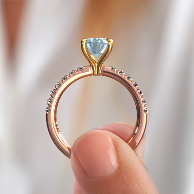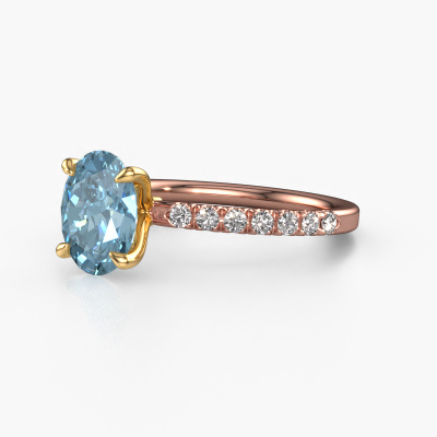 Der oben gezeigte Roségold Verlobungsring wird Crystal OVL 2 genannt. Es ist ein Pavé Solitär Ring, da er einen zentralen Edelstein und ein Band mit Pavé-Fassung hat. Der exklusive Pavé Solitär Verlobungsring ist in der Kombination 14 Karat Roségold mit Gold und ist mit einem oval 9x7 mm blauer Labordiamant-Mittelstein besetzt und das Band hat eine Pavé-Fassung mit Lab grown Diamant. Jedes Schmuckstück wird von unseren Meister-Goldschmieden in unserem eigenen Studio für Sie gefertigt. Um den zentralen Stein noch mehr zu betonen, hat das Band eine Pavé-Fassung mit weiteren blauer Labordiamant. Durch die offenen Krappen kann das Licht aus mehreren Winkeln auf den blauer Labordiamant treffen und der blauer Labordiamant-Ring funkelt noch mehr. Das obere Foto zeigt die leidenschaftlich handgefertigten Details des Rings. Die hohe Positionierung der Mittelstein ist ein echter Blickfang. Der perfekte Verlobungsring für das Kronjuwel Ihres Lebens!Durch die Kombination modernster Technik mit uralter Handwerkskunst können wir alle Verlobungsringe in unserem eigenen Studio anfertigen. Jedes Schmuckstück wird auf Anfrage gefertigt. Das ist vorteilhaft, weil wir Ihnen dadurch einen Preis anbieten können, den Sie nirgendwo anders finden.Unser Team fügt unserer Online-Kollektion täglich neue Designs hinzu. Unsere Designer und Goldschmiede arbeiten zusammen, um das beste Design zu kreieren. Wir bemühen uns, eine vielfältige Kollektion von Schmuckstücken anzubieten. Vielleicht haben Sie ein bestimmtes Design im Sinn. Eines, dass Sie irgendwo gesehen haben. Gerne geben wir Ihnen eine kostenlose Beratung. Wir machen Ihnen ein Angebot, basierend auf einem fairen Preis/Leistungsverhältnis, das Sie verblüffen wird.Um es einfacher zu machen, bieten wir eine kostenlose 30-tägige Rücksendung.