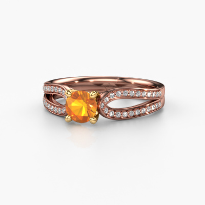 Der oben gezeigte Roségold Verlobungsring wird Antonia rnd 2 genannt. Es ist ein Pavé Solitär Ring, da er einen zentralen Edelstein und ein Band mit Pavé-Fassung hat. Der traditionell Pavé Solitär Verlobungsring ist in der Kombination 14 Karat Roségold mit Gold und ist mit einem rund 5 mm Citrin-Mittelstein besetzt und das Band hat eine Pavé-Fassung mit Diamanten. Jedes Schmuckstück wird nur für Sie persönlich hergestellt, mit Liebe zum Detail und Design. Um den zentralen Stein noch mehr zu betonen, hat das Band eine Pavé-Fassung mit weiteren Citrin. Durch die offenen Krappen kann das Licht aus mehreren Winkeln auf den Citrin treffen und der Citrin-Ring funkelt noch mehr. Das obere Foto zeigt die leidenschaftlich handgefertigten Details des Rings. Die hohe Positionierung der Mittelstein ist ein echter Blickfang. Der perfekte Verlobungsring für das Kronjuwel Ihres Lebens!Nachdem Sie Ihre Bestellung aufgegeben haben, beginnen unsere Goldschmiede mit dem kreativen Prozess der Herstellung Ihres Antonia rnd 2 Verlobungsring. Wir haben keine Lager. Das ist vorteilhaft, da diese Kosten nicht an Sie weitergegeben werden. Daher sind wir in der Lage, Schmuck zu außergewöhnlich niedrigen Preisen anzubieten.Haben Sie irgendwo einen bestimmten Verlobungsring gefunden, den Sie Ihrem Liebsten schenken möchten? Sie können uns gerne sagen, was Sie wollen und wir werden Ihr Design in einen Einzigartigen traditionell Verlobungsring verwandeln. Sie können die Entwicklungen Ihres Ringdesigns verfolgen, da wir 3D-Zeichnungen verwenden. Das gibt Ihnen eine realistische Vorschau, wie Ihr Design aussehen wird. Sie können auch einen Dummy vorbestellen. Ein Dummy ist ein Kunststoffring, der nach Ihrem Ringdesign gestaltet werden kann. Sie können ihn anprobieren und prüfen, ob seine Breite und Größe für Sie geeignet sind. Wir senden Ihnen gerne ein unverbindliches Angebot zu einem fairen Preis/Leistungsverhältnis. Sie werden in Anbetracht der Qualität des Rings und der Edelsteine überrascht sein.Um es einfacher zu machen, bieten wir eine kostenlose 30-tägige Rücksendung.