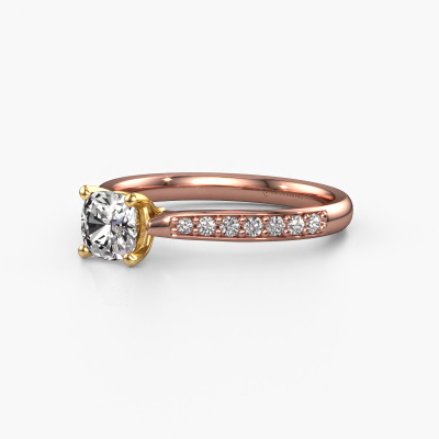 Der oben gezeigte Roségold Verlobungsring wird Mignon cus 2 genannt. Es ist ein Pavé Solitär Ring, da er einen zentralen Edelstein und ein Band mit Pavé-Fassung hat. Der exklusive Pavé Solitär Verlobungsring ist in der Kombination 14 Karat Roségold mit Gold und ist mit einem cussion 0.70 crt Diamant-Mittelstein besetzt und das Band hat eine Pavé-Fassung mit Lab grown Diamant. Jedes Schmuckstück wird hergestellt mit Leidenschaft und Liebe, von einem unserer Meister-Goldschmiede. Um den zentralen Stein noch mehr zu betonen, hat das Band eine Pavé-Fassung mit weiteren Diamant. Durch die offenen Krappen kann das Licht aus mehreren Winkeln auf den Diamant treffen und der Diamant-Ring funkelt noch mehr. Das obere Foto zeigt die leidenschaftlich handgefertigten Details des Rings. Die hohe Positionierung der Mittelstein ist ein echter Blickfang. Der perfekte Verlobungsring für das Kronjuwel Ihres Lebens!Nachdem Sie Ihre Bestellung aufgegeben haben, beginnen unsere Goldschmiede mit dem kreativen Prozess der Herstellung Ihres Mignon cus 2 Verlobungsring. Wir haben keine Lager. Das ist vorteilhaft, da diese Kosten nicht an Sie weitergegeben werden. Daher sind wir in der Lage, Schmuck zu außergewöhnlich niedrigen Preisen anzubieten.Unser Team fügt unserer Online-Kollektion täglich neue Designs hinzu. Unsere Designer und Goldschmiede arbeiten zusammen, um das beste Design zu kreieren. Wir bemühen uns, eine vielfältige Kollektion von Schmuckstücken anzubieten. Vielleicht haben Sie ein bestimmtes Design im Sinn. Eines, dass Sie irgendwo gesehen haben. Gerne geben wir Ihnen eine kostenlose Beratung. Wir machen Ihnen ein Angebot, basierend auf einem fairen Preis/Leistungsverhältnis, das Sie verblüffen wird.Um es einfacher zu machen, bieten wir eine kostenlose 30-tägige Rücksendung.