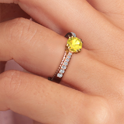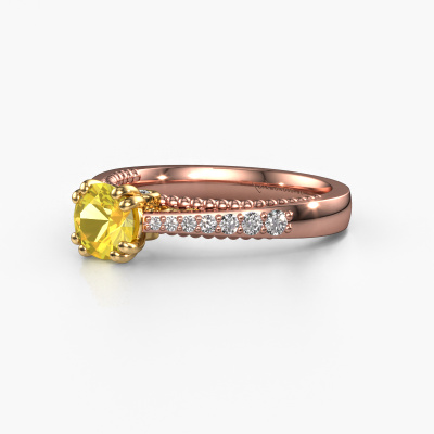 Der oben gezeigte Roségold Verlobungsring wird Rozella genannt. Es ist ein Pavé Solitär Ring, da er einen zentralen Edelstein und ein Band mit Pavé-Fassung hat. Der einzigartige Pavé Solitär Verlobungsring ist in der Kombination 14 Karat Roségold mit Gold und ist mit einem rund 5.5 mm Gelb Saphir-Mittelstein besetzt und das Band hat eine Pavé-Fassung mit Lab grown Diamant. Jedes Schmuckstück lässt Ihren Finger erstrahlen. Ihr Ring ist mit Liebe von unseren Goldschmieden handgefertigt. Um den zentralen Stein noch mehr zu betonen, hat das Band eine Pavé-Fassung mit weiteren Gelb Saphir. Durch die offenen Krappen kann das Licht aus mehreren Winkeln auf den Gelb Saphir treffen und der Gelb Saphir-Ring funkelt noch mehr. Das obere Foto zeigt die leidenschaftlich handgefertigten Details des Rings. Die hohe Positionierung der Mittelstein ist ein echter Blickfang. Der perfekte Verlobungsring für das Kronjuwel Ihres Lebens!Nachdem Sie Ihre Bestellung aufgegeben haben, beginnen unsere Goldschmiede mit dem kreativen Prozess der Herstellung Ihres Rozella Verlobungsring. Wir haben keine Lager. Das ist vorteilhaft, da diese Kosten nicht an Sie weitergegeben werden. Daher sind wir in der Lage, Schmuck zu außergewöhnlich niedrigen Preisen anzubieten.Unsere Designer und Goldschmiede arbeiten jeden Tag zusammen und versuchen, neue Schmuckstücke zu kreieren. Vielleicht haben Sie irgendwo einen schönen, einzigartige Verlobungsring gefunden, nach dem Ihr einzigartiger Ring gestaltet werden kann. Setzen Sie sich mit uns in Verbindung. Wir machen Ihnen ein Angebot, basierend auf einem fairen Preis/Leistungsverhältnis, das Sie begeistern wird.Um es einfacher zu machen, bieten wir eine kostenlose 30-tägige Rücksendung.