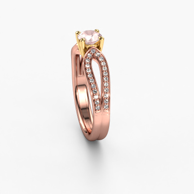 Der oben gezeigte Roségold Verlobungsring wird Antonia rnd 2 genannt. Es ist ein Pavé Solitär Ring, da er einen zentralen Edelstein und ein Band mit Pavé-Fassung hat. Der traditionell Pavé Solitär Verlobungsring ist in der Kombination 14 Karat Roségold mit Gold und ist mit einem rund 5 mm Morganit Champagner-Mittelstein besetzt und das Band hat eine Pavé-Fassung mit Diamanten. Jedes Schmuckstück wird nur für Sie persönlich hergestellt, mit Liebe zum Detail und Design. Um den zentralen Stein noch mehr zu betonen, hat das Band eine Pavé-Fassung mit weiteren Morganit Champagner. Durch die offenen Krappen kann das Licht aus mehreren Winkeln auf den Morganit Champagner treffen und der Morganit Champagner-Ring funkelt noch mehr. Das obere Foto zeigt die leidenschaftlich handgefertigten Details des Rings. Die hohe Positionierung der Mittelstein ist ein echter Blickfang. Der perfekte Verlobungsring für das Kronjuwel Ihres Lebens!Nachdem Sie Ihre Bestellung aufgegeben haben, beginnen unsere Goldschmiede mit dem kreativen Prozess der Herstellung Ihres Antonia rnd 2 Verlobungsring. Wir haben keine Lager. Das ist vorteilhaft, da diese Kosten nicht an Sie weitergegeben werden. Daher sind wir in der Lage, Schmuck zu außergewöhnlich niedrigen Preisen anzubieten.Haben Sie irgendwo einen bestimmten Verlobungsring gefunden, den Sie Ihrem Liebsten schenken möchten? Sie können uns gerne sagen, was Sie wollen und wir werden Ihr Design in einen Einzigartigen traditionell Verlobungsring verwandeln. Sie können die Entwicklungen Ihres Ringdesigns verfolgen, da wir 3D-Zeichnungen verwenden. Das gibt Ihnen eine realistische Vorschau, wie Ihr Design aussehen wird. Sie können auch einen Dummy vorbestellen. Ein Dummy ist ein Kunststoffring, der nach Ihrem Ringdesign gestaltet werden kann. Sie können ihn anprobieren und prüfen, ob seine Breite und Größe für Sie geeignet sind. Wir senden Ihnen gerne ein unverbindliches Angebot zu einem fairen Preis/Leistungsverhältnis. Sie werden in Anbetracht der Qualität des Rings und der Edelsteine überrascht sein.Um es einfacher zu machen, bieten wir eine kostenlose 30-tägige Rücksendung.