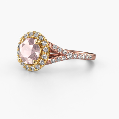 Der oben gezeigte Roségold Verlobungsring wird Kimber RND genannt. Es ist ein Pavé Solitär Ring, da er einen zentralen Edelstein und ein Band mit Pavé-Fassung hat. Der klassische Pavé Solitär Verlobungsring ist in der Kombination 14 Karat Roségold mit Gold und ist mit einem rund 7 mm Morganit Champagner-Mittelstein besetzt und das Band hat eine Pavé-Fassung mit Lab grown Diamant. Jedes Schmuckstück ist um Ihrem Finger Glanz zu verleihen. Jeder Ring wird von unseren Goldschmieden liebevoll von Hand gefertigt. Um den zentralen Stein noch mehr zu betonen, hat das Band eine Pavé-Fassung mit weiteren Morganit Champagner. Durch die offenen Krappen kann das Licht aus mehreren Winkeln auf den Morganit Champagner treffen und der Morganit Champagner-Ring funkelt noch mehr. Das obere Foto zeigt die leidenschaftlich handgefertigten Details des Rings. Die hohe Positionierung der Mittelstein ist ein echter Blickfang. Der perfekte Verlobungsring für das Kronjuwel Ihres Lebens!Nach Erhalt Ihrer Bestellung beginnen unsere Goldschmiede mit Leidenschaft den kreativen Prozess und fertigen Ihren Verlobungsring in unserem eigenen Studio. Da wir keine großen Lager haben, werden diese Kosten nicht an Sie weitergegeben. Unsere Preisgestaltung ist der Beweis dafür! Wir bieten Schmuck zum niedrigsten Preis, garantiert.Unser Team fügt unserer Online-Kollektion täglich neue Designs hinzu. Unsere Designer und Goldschmiede arbeiten zusammen, um das beste Design zu kreieren. Wir bemühen uns, eine vielfältige Kollektion von Schmuckstücken anzubieten. Vielleicht haben Sie ein bestimmtes Design im Sinn. Eines, dass Sie irgendwo gesehen haben. Gerne geben wir Ihnen eine kostenlose Beratung. Wir machen Ihnen ein Angebot, basierend auf einem fairen Preis/Leistungsverhältnis, das Sie verblüffen wird.Um es einfacher zu machen, bieten wir eine kostenlose 30-tägige Rücksendung.