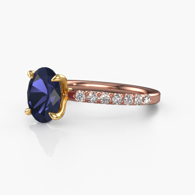 Der oben gezeigte Roségold Verlobungsring wird Crystal OVL 2 genannt. Es ist ein Pavé Solitär Ring, da er einen zentralen Edelstein und ein Band mit Pavé-Fassung hat. Der exklusive Pavé Solitär Verlobungsring ist in der Kombination 14 Karat Roségold mit Gold und ist mit einem oval 9x7 mm Saphir-Mittelstein besetzt und das Band hat eine Pavé-Fassung mit Lab grown Diamant. Jedes Schmuckstück wird von unseren Meister-Goldschmieden in unserem eigenen Studio für Sie gefertigt. Um den zentralen Stein noch mehr zu betonen, hat das Band eine Pavé-Fassung mit weiteren Saphir. Durch die offenen Krappen kann das Licht aus mehreren Winkeln auf den Saphir treffen und der Saphir-Ring funkelt noch mehr. Das obere Foto zeigt die leidenschaftlich handgefertigten Details des Rings. Die hohe Positionierung der Mittelstein ist ein echter Blickfang. Der perfekte Verlobungsring für das Kronjuwel Ihres Lebens!Durch die Kombination modernster Technik mit uralter Handwerkskunst können wir alle Verlobungsringe in unserem eigenen Studio anfertigen. Jedes Schmuckstück wird auf Anfrage gefertigt. Das ist vorteilhaft, weil wir Ihnen dadurch einen Preis anbieten können, den Sie nirgendwo anders finden.Unser Team fügt unserer Online-Kollektion täglich neue Designs hinzu. Unsere Designer und Goldschmiede arbeiten zusammen, um das beste Design zu kreieren. Wir bemühen uns, eine vielfältige Kollektion von Schmuckstücken anzubieten. Vielleicht haben Sie ein bestimmtes Design im Sinn. Eines, dass Sie irgendwo gesehen haben. Gerne geben wir Ihnen eine kostenlose Beratung. Wir machen Ihnen ein Angebot, basierend auf einem fairen Preis/Leistungsverhältnis, das Sie verblüffen wird.Um es einfacher zu machen, bieten wir eine kostenlose 30-tägige Rücksendung.