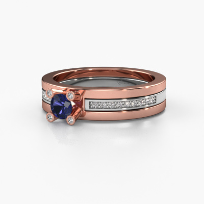 Der oben gezeigte Roségold Verlobungsring wird Alisha genannt. Es ist ein Pavé Solitär Ring, da er einen zentralen Edelstein und ein Band mit Pavé-Fassung hat. Der design Pavé Solitär Verlobungsring ist in der Kombination 14 Karat Roségold mit Weißgold und ist mit einem rund 4 mm Saphir-Mittelstein besetzt und das Band hat eine Pavé-Fassung mit Diamanten. Jedes Schmuckstück ist einzigartig in jeder Hinsicht! Einfach nach Ihren Wünschen anzupassen. Um den zentralen Stein noch mehr zu betonen, hat das Band eine Pavé-Fassung mit weiteren Saphir. Durch die offenen Krappen kann das Licht aus mehreren Winkeln auf den Saphir treffen und der Saphir-Ring funkelt noch mehr. Das obere Foto zeigt die leidenschaftlich handgefertigten Details des Rings. Die hohe Positionierung der Mittelstein ist ein echter Blickfang. Der perfekte Verlobungsring für das Kronjuwel Ihres Lebens!Durch die Kombination modernster Technik mit uralter Handwerkskunst können wir alle Verlobungsringe in unserem eigenen Studio anfertigen. Jedes Schmuckstück wird auf Anfrage gefertigt. Das ist vorteilhaft, weil wir Ihnen dadurch einen Preis anbieten können, den Sie nirgendwo anders finden.Haben Sie irgendwo einen bestimmten Verlobungsring gefunden, den Sie Ihrem Liebsten schenken möchten? Sie können uns gerne sagen, was Sie wollen und wir werden Ihr Design in einen Einzigartigen design Verlobungsring verwandeln. Sie können die Entwicklungen Ihres Ringdesigns verfolgen, da wir 3D-Zeichnungen verwenden. Das gibt Ihnen eine realistische Vorschau, wie Ihr Design aussehen wird. Sie können auch einen Dummy vorbestellen. Ein Dummy ist ein Kunststoffring, der nach Ihrem Ringdesign gestaltet werden kann. Sie können ihn anprobieren und prüfen, ob seine Breite und Größe für Sie geeignet sind. Wir senden Ihnen gerne ein unverbindliches Angebot zu einem fairen Preis/Leistungsverhältnis. Sie werden in Anbetracht der Qualität des Rings und der Edelsteine überrascht sein.Um es einfacher zu machen, bieten wir eine kostenlose 30-tägige Rücksendung.