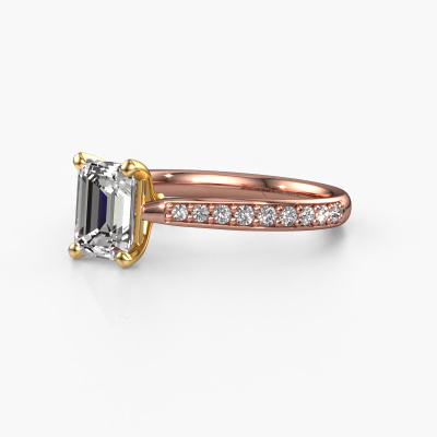 Der oben gezeigte Roségold Verlobungsring wird Mignon eme 2 genannt. Es ist ein Pavé Solitär Ring, da er einen zentralen Edelstein und ein Band mit Pavé-Fassung hat. Der exklusive Pavé Solitär Verlobungsring ist in der Kombination 14 Karat Roségold mit Gold und ist mit einem smaragd schliff 7x5 mm Zirkonia-Mittelstein besetzt und das Band hat eine Pavé-Fassung mit Lab grown Diamant. Jedes Schmuckstück wird nur für Sie persönlich hergestellt, mit Liebe zum Detail und Design. Um den zentralen Stein noch mehr zu betonen, hat das Band eine Pavé-Fassung mit weiteren Zirkonia. Durch die offenen Krappen kann das Licht aus mehreren Winkeln auf den Zirkonia treffen und der Zirkonia-Ring funkelt noch mehr. Das obere Foto zeigt die leidenschaftlich handgefertigten Details des Rings. Die hohe Positionierung der Mittelstein ist ein echter Blickfang. Der perfekte Verlobungsring für das Kronjuwel Ihres Lebens!Haben Sie ein bestimmtes Budget? Sie können uns gerne kontaktieren, damit wir Ihre Optionen besprechen können. Wir bieten unsere Verlobungsringe zum garantiert besten Preis, denn wir fertigen sie auf Bestellung. Solche Preise finden Sie nirgendwo anders!Haben Sie einen bestimmten Ring im Sinn? Eines, dass Sie irgendwo gesehen haben. Bitte zögern Sie nicht, uns zu sagen, was Sie wollen und wir werden Ihr Design in einen Einzigartigen Verlobungsring verwandeln. Sie können die Entwicklungen Ihres Ringdesigns verfolgen, da wir 3D-Zeichnungen verwenden. Das gibt Ihnen eine realistische Vorschau Ihres Designs. Wir senden Ihnen gerne ein unverbindliches Angebot zu einem fairen Preis/Leistungsverhältnis. Es wird Sie erstaunen.Um es einfacher zu machen, bieten wir eine kostenlose 30-tägige Rücksendung.