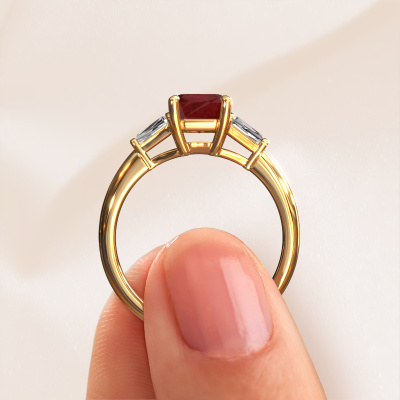 Dieser Verlobungsring aus 14 Karat Gold heißt Kina EME. Wie würden Sie den Stil der Liebe Ihres Lebens beschreiben? Hat sie einen einzigartigen Sinn für Stil? Diese umwerfende, besondere Gold Verlobungsring mit 8x6 mm Rubin kann nach Ihren Wünschen angefertigt werden. Unsere Rubin wurden sorgfältig ausgewählt. Denn wir denken, dass Ihr Verlobungsring nur mit dem schönsten Edelstein gekrönt werden darf. Sehen Sie das auch so? Jedes Schmuckstück wird hergestellt von einem Team leidenschaftlicher Goldschmiede und Schmuckdesigner. Das wird Ihr Kronjuwel unbedingt zu einem Blickfang machen.Haben Sie ein bestimmtes Budget? Sie können uns gerne kontaktieren, damit wir Ihre Optionen besprechen können. Wir bieten unsere Verlobungsringe zum garantiert besten Preis, denn wir fertigen sie auf Bestellung. Solche Preise finden Sie nirgendwo anders!Haben Sie irgendwo einen bestimmten Verlobungsring gefunden, den Sie Ihrem Liebsten schenken möchten? Sie können uns gerne sagen, was Sie wollen und wir werden Ihr Design in einen Einzigartigen exklusive Verlobungsring verwandeln. Sie können die Entwicklungen Ihres Ringdesigns verfolgen, da wir 3D-Zeichnungen verwenden. Das gibt Ihnen eine realistische Vorschau, wie Ihr Design aussehen wird. Sie können auch einen Dummy vorbestellen. Ein Dummy ist ein Kunststoffring, der nach Ihrem Ringdesign gestaltet werden kann. Sie können ihn anprobieren und prüfen, ob seine Breite und Größe für Sie geeignet sind. Wir senden Ihnen gerne ein unverbindliches Angebot zu einem fairen Preis/Leistungsverhältnis. Sie werden in Anbetracht der Qualität des Rings und der Edelsteine überrascht sein.Um es einfacher zu machen, bieten wir eine kostenlose 30-tägige Rücksendung.