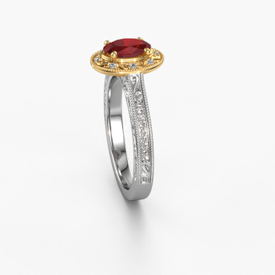 Dieser Verlobungsring aus 14 Karat Weißgold mit 7x5 mm Rubin heißt Alice OVL. Was macht Ihre Beziehung einzigartig? Was hat sie an sich, was Sie dazu bringt, auf die Knie zu fallen? Die einzigartige Verbindung zwischen Ihnen beiden wird durch einen ebenso einzigartigen Ring unterstrichen. Ein einzigartiger Halo Verlobungsring, der nur für sie gemacht wurde. Deshalb passt dieser Ring wie angegossen. Jedes einzelne Detail dieses Filigrane, Weißgold Rubin Verlobungsring wird von unserem erfahrenen Goldschmieden in unserem eigenen Studio von Hand ausgesucht, bearbeitet und poliert. Das Endprodukt ist ein exquisiter Ring, einzigartig und bis zur Perfektion gebracht. Danach streben unsere erfahrenen Juweliere. Jedes Schmuckstück wird hergestellt mit Leidenschaft und Liebe, von einem unserer Meister-Goldschmiede.Mit unserer modernen Technik können wir Schmuckstücke von höchster Qualität mit größter Sorgfalt für Sie entwerfen und anpassen. Unsere Verlobungsringe sind immer um 30 Prozent günstiger als bei anderen Juwelieren. Wir fertigen Verlobungsringe auf Bestellung, also müssen wir keine großen Lager unterhalten. Wenn Sie ein bestimmtes Budget haben, beraten wir Sie gerne entsprechend.Unser Team fügt unserer Online-Kollektion täglich neue Designs hinzu. Unsere Designer und Goldschmiede arbeiten zusammen, um das beste Design zu kreieren. Wir bemühen uns, eine vielfältige Kollektion von Schmuckstücken anzubieten. Vielleicht haben Sie ein bestimmtes Design im Sinn. Eines, dass Sie irgendwo gesehen haben. Gerne geben wir Ihnen eine kostenlose Beratung. Wir machen Ihnen ein Angebot, basierend auf einem fairen Preis/Leistungsverhältnis, das Sie verblüffen wird.Um es einfacher zu machen, bieten wir eine kostenlose 30-tägige Rücksendung.