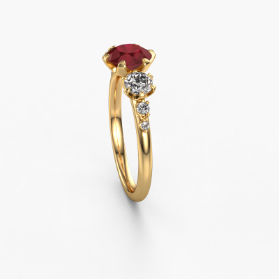 Dieser Verlobungsring aus 14 Karat Gold heißt Aniek RND. Wie würden Sie den Stil der Liebe Ihres Lebens beschreiben? Hat sie einen einzigartigen Sinn für Stil? Diese umwerfende, zierliche Gold Verlobungsring mit 6.5 mm Rubin kann nach Ihren Wünschen angefertigt werden. Unsere Rubin wurden sorgfältig ausgewählt. Denn wir denken, dass Ihr Verlobungsring nur mit dem schönsten Edelstein gekrönt werden darf. Sehen Sie das auch so? Jedes Schmuckstück wird von unseren Meister-Goldschmieden in unserem eigenen Studio für Sie gefertigt.Haben Sie ein bestimmtes Budget? Sie können uns gerne kontaktieren, damit wir Ihre Optionen besprechen können. Wir bieten unsere Verlobungsringe zum garantiert besten Preis, denn wir fertigen sie auf Bestellung. Solche Preise finden Sie nirgendwo anders!Haben Sie irgendwo einen bestimmten Verlobungsring gefunden, den Sie Ihrem Liebsten schenken möchten? Sie können uns gerne sagen, was Sie wollen und wir werden Ihr Design in einen Einzigartigen Fantasie Verlobungsring verwandeln. Sie können die Entwicklungen Ihres Ringdesigns verfolgen, da wir 3D-Zeichnungen verwenden. Das gibt Ihnen eine realistische Vorschau, wie Ihr Design aussehen wird. Sie können auch einen Dummy vorbestellen. Ein Dummy ist ein Kunststoffring, der nach Ihrem Ringdesign gestaltet werden kann. Sie können ihn anprobieren und prüfen, ob seine Breite und Größe für Sie geeignet sind. Wir senden Ihnen gerne ein unverbindliches Angebot zu einem fairen Preis/Leistungsverhältnis. Sie werden in Anbetracht der Qualität des Rings und der Edelsteine überrascht sein.Um es einfacher zu machen, bieten wir eine kostenlose 30-tägige Rücksendung.