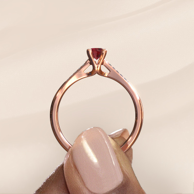 Der oben gezeigte Ring wird Janna 2 genannt. Es ist ein Pavé Solitär Ring, da er einen zentralen Edelstein und ein Band mit Pavé-Fassung hat. Dieser 14 Karat Roségold ring ist mit einem 4 mm rund Rubin-Mittelstein besetzt und das Band hat eine Pavé-Fassung mit Diamanten. Jedes Schmuckstück wird von unseren Meister-Goldschmieden in unserem eigenen Studio für Sie gefertigt.Dieser klassische Roségold Pavé Solitär Verlobungsring mit Pavé-Fassung hat einen exquisiten, rund Rubin als Mittelstein. Um den zentralen Stein noch mehr zu betonen, hat das Band eine Pavé-Fassung mit weiteren Diamanten. Durch die offenen Krappen kann das Licht aus mehreren Winkeln auf den Rubin treffen und der Rubin-Ring funkelt noch mehr. Das obere Foto zeigt die leidenschaftlich handgefertigten Details des Rings. Die hohe Positionierung der Mittelstein ist ein echter Blickfang. Der perfekte Verlobungsring für das Kronjuwel Ihres Lebens!Durch die Kombination modernster Technik mit uralter Handwerkskunst können wir alle Verlobungsringe in unserem eigenen Studio anfertigen. Jedes Schmuckstück wird auf Anfrage gefertigt. Das ist vorteilhaft, weil wir Ihnen dadurch einen Preis anbieten können, den Sie nirgendwo anders finden.Haben Sie einen bestimmten Ring im Sinn? Eines, dass Sie irgendwo gesehen haben. Bitte zögern Sie nicht, uns zu sagen, was Sie wollen und wir werden Ihr Design in einen Einzigartigen Verlobungsring verwandeln. Sie können die Entwicklungen Ihres Ringdesigns verfolgen, da wir 3D-Zeichnungen verwenden. Das gibt Ihnen eine realistische Vorschau Ihres Designs. Wir senden Ihnen gerne ein unverbindliches Angebot zu einem fairen Preis/Leistungsverhältnis. Es wird Sie erstaunen.Um es einfacher zu machen, bieten wir eine kostenlose 30-tägige Rücksendung.
