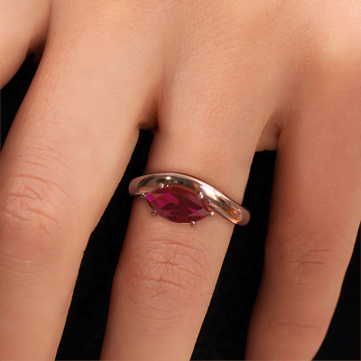 Dieser Verlobungsring aus 14 Karat Roségold mit 11x5.5 mm Rubin heißt Floor MRQ. Was macht Ihre Beziehung einzigartig? Was hat sie an sich, was Sie dazu bringt, auf die Knie zu fallen? Die einzigartige Verbindung zwischen Ihnen beiden wird durch