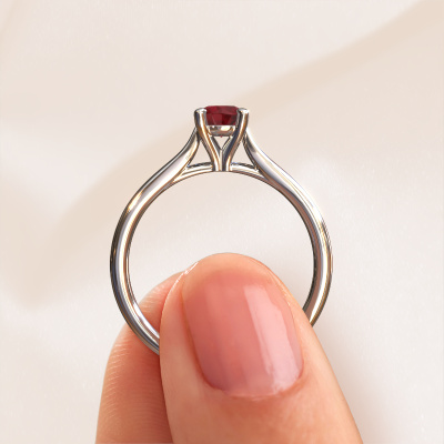 Der oben gezeigte Verlobungsring wird Mignon rnd 1 genannt. Wir nennen das einen Solitär-Ring, denn er hat einen einzelnen Edelstein. Es ist ein 14 Karat Weißgold ring, mit 5 mm rund Rubin. Das Besondere an unserem Konfigurator ist dass Sie selbst einem Schmuckstück zusammenstellen können zu einem eigenen persönlichen Schmuckstück. Dieser Solitäre Verlobungsring ist gefertigt in der Edelmetall Kombination Weißgold mit Weißgold, aber Sie können also auch wählen aus anderen Farben. Jedes Schmuckstück wird hergestellt mit Leidenschaft und Liebe, von einem unserer Meister-Goldschmiede. Der Solitär-Verlobungsring ist eine Sonderform des Verlobungsring. Seine offenen Krappen ermöglichen, dass Licht aus mehr Winkeln auf den Edelstein trifft. Dieser klassische Verlobungsring ist durch die hohe Positionierung des Edelsteins ein atemberaubender Blickfang. Wir schmücken diesen Solitär-Ring sorgfältig von Hand, damit Sie Ihren Anfrage mit einem einzigartigen Ring würdigen können. Die Liebe Ihres Lebens verdient nur das Beste. Nach Erhalt Ihrer Bestellung beginnen unsere Goldschmiede mit Leidenschaft den kreativen Prozess und fertigen Ihren Verlobungsring in unserem eigenen Studio. Da wir keine großen Lager haben, werden diese Kosten nicht an Sie weitergegeben. Unsere Preisgestaltung ist der Beweis dafür! Wir bieten Schmuck zum niedrigsten Preis, garantiert.Haben Sie irgendwo einen bestimmten Verlobungsring gefunden, den Sie Ihrem Liebsten schenken möchten? Sie können uns gerne sagen, was Sie wollen und wir werden Ihr Design in einen Einzigartigen klassische Verlobungsring verwandeln. Sie können die Entwicklungen Ihres Ringdesigns verfolgen, da wir 3D-Zeichnungen verwenden. Das gibt Ihnen eine realistische Vorschau, wie Ihr Design aussehen wird. Sie können auch einen Dummy vorbestellen. Ein Dummy ist ein Kunststoffring, der nach Ihrem Ringdesign gestaltet werden kann. Sie können ihn anprobieren und prüfen, ob seine Breite und Größe für Sie geeignet sind. Wir senden Ihnen gerne ein unverbindliches Angebot zu einem fairen Preis/Leistungsverhältnis. Sie werden in Anbetracht der Qualität des Rings und der Edelsteine überrascht sein.Um es einfacher zu machen, bieten wir eine kostenlose 30-tägige Rücksendung.