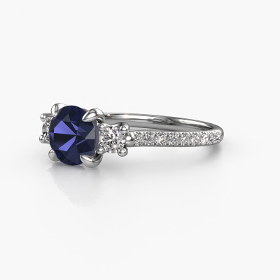 Dieser Verlobungsring aus 14 Karat Weißgold mit 6.8 mm Saphir heißt Jesica. Was macht Ihre Beziehung einzigartig? Was hat sie an sich, was Sie dazu bringt, auf die Knie zu fallen? Die einzigartige Verbindung zwischen Ihnen beiden wird durch einen ebenso einzigartigen Ring unterstrichen. Ein einzigartiger 3-stone Verlobungsring, der nur für sie gemacht wurde. Deshalb passt dieser Ring wie angegossen. Jedes einzelne Detail dieses graziöse, Weißgold Saphir Verlobungsring wird von unserem erfahrenen Goldschmieden in unserem eigenen Studio von Hand ausgesucht, bearbeitet und poliert. Das Endprodukt ist ein exquisiter Ring, einzigartig und bis zur Perfektion gebracht. Danach streben unsere erfahrenen Juweliere. Jedes Schmuckstück wird nur für Sie persönlich hergestellt, mit Liebe zum Detail und Design.Nach Erhalt Ihrer Bestellung beginnen unsere Goldschmiede mit Leidenschaft den kreativen Prozess und fertigen Ihren Verlobungsring in unserem eigenen Studio. Da wir keine großen Lager haben, werden diese Kosten nicht an Sie weitergegeben. Unsere Preisgestaltung ist der Beweis dafür! Wir bieten Schmuck zum niedrigsten Preis, garantiert.Verschiedene Arten von neuen Ringen werden täglich von unserem Team angefertigt. Vielleicht haben Sie irgendwo einen 3-stone Verlobungsring gefunden. Einen, den Sie Ihrem Liebsten schenken möchten. Bitte zögern Sie nicht, unseren Schmuckdesignern Ihre Gedanken und Ihr Design zu zeigen. Wir würden gerne Ihr Design in einen klassische Verlobungsring verwandeln. Sie können die Entwicklungen Ihres Ringdesigns verfolgen, da wir sehr detaillierte 3D-Zeichnungen verwenden. Darüber hinaus können Sie einen Dummy des Designs bestellen. Ein Dummy ist ein Kunststoffring, der nach Ihrem Ringdesign gestaltet werden kann. Sie können ihn anprobieren und prüfen, ob der Verlobungsring Ihren Vorstellungen entspricht. Wir senden Ihnen gerne ein unverbindliches Angebot zu einem fairen Preis/Leistungsverhältnis. Das Angebot wird Sie angesichts der Qualität des Rings und der Edelsteine verblüffen.Um es einfacher zu machen, bieten wir eine kostenlose 30-tägige Rücksendung.