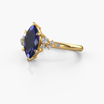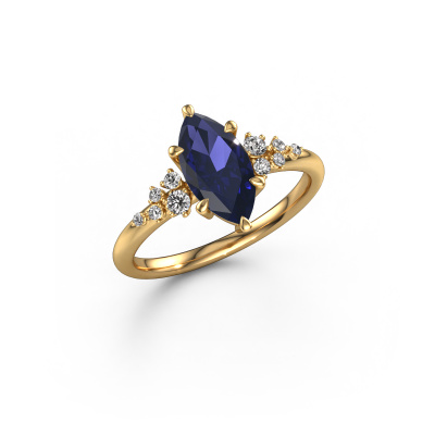 Der oben gezeigte Ring wird Royce MRQ genannt. Es ist ein Pavé Solitär Ring, da er einen zentralen Edelstein und ein Band mit Pavé-Fassung hat. Dieser 14 Karat Gold ring ist mit einem 11x5.5 mm marquise Saphir-Mittelstein besetzt und das Band hat