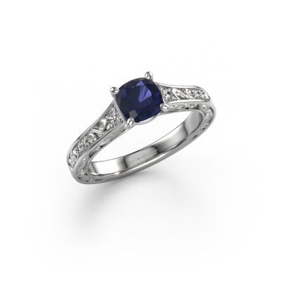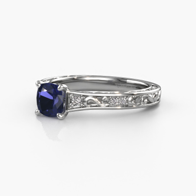 Der oben gezeigte Ring wird Mallory cus genannt. Es ist ein Pavé Solitär Ring, da er einen zentralen Edelstein und ein Band mit Pavé-Fassung hat. Dieser Platin ring ist mit einem 5.5 mm cussion Saphir-Mittelstein besetzt und das Band hat eine Pavé-Fassung mit Diamanten. Jedes Schmuckstück wird von unseren Meister-Goldschmieden in unserem eigenen Studio für Sie gefertigt.Dieser Keltische Platin Pavé Solitär Verlobungsring mit Pavé-Fassung hat einen exquisiten, cussion Saphir als Mittelstein. Um den zentralen Stein noch mehr zu betonen, hat das Band eine Pavé-Fassung mit weiteren Diamanten. Durch die offenen Krappen kann das Licht aus mehreren Winkeln auf den Saphir treffen und der Saphir-Ring funkelt noch mehr. Das obere Foto zeigt die leidenschaftlich handgefertigten Details des Rings. Die hohe Positionierung der Mittelstein ist ein echter Blickfang. Der perfekte Verlobungsring für das Kronjuwel Ihres Lebens!Mit unserer modernen Technik können wir Schmuckstücke von höchster Qualität mit größter Sorgfalt für Sie entwerfen und anpassen. Unsere Verlobungsringe sind immer um 30 Prozent günstiger als bei anderen Juwelieren. Wir fertigen Verlobungsringe auf Bestellung, also müssen wir keine großen Lager unterhalten. Wenn Sie ein bestimmtes Budget haben, beraten wir Sie gerne entsprechend.Verschiedene Arten von neuen Ringen werden täglich von unserem Team angefertigt. Vielleicht haben Sie irgendwo einen Pavé Solitär Verlobungsring gefunden. Einen, den Sie Ihrem Liebsten schenken möchten. Bitte zögern Sie nicht, unseren Schmuckdesignern Ihre Gedanken und Ihr Design zu zeigen. Wir würden gerne Ihr Design in einen Keltische Verlobungsring verwandeln. Sie können die Entwicklungen Ihres Ringdesigns verfolgen, da wir sehr detaillierte 3D-Zeichnungen verwenden. Darüber hinaus können Sie einen Dummy des Designs bestellen. Ein Dummy ist ein Kunststoffring, der nach Ihrem Ringdesign gestaltet werden kann. Sie können ihn anprobieren und prüfen, ob der Verlobungsring Ihren Vorstellungen entspricht. Wir senden Ihnen gerne ein unverbindliches Angebot zu einem fairen Preis/Leistungsverhältnis. Das Angebot wird Sie angesichts der Qualität des Rings und der Edelsteine verblüffen.Um es einfacher zu machen, bieten wir eine kostenlose 30-tägige Rücksendung.