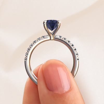 Der oben gezeigte Platin Verlobungsring wird Crystal RND 2 genannt. Es ist ein Pavé Solitär Ring, da er einen zentralen Edelstein und ein Band mit Pavé-Fassung hat. Der klassische Pavé Solitär Verlobungsring ist in der Kombination Platin mit Platin und ist mit einem rund 7 mm Saphir-Mittelstein besetzt und das Band hat eine Pavé-Fassung mit Lab grown Diamant. Jedes Schmuckstück ist einzigartig in jeder Hinsicht! Einfach nach Ihren Wünschen anzupassen. Um den zentralen Stein noch mehr zu betonen, hat das Band eine Pavé-Fassung mit weiteren Saphir. Durch die offenen Krappen kann das Licht aus mehreren Winkeln auf den Saphir treffen und der Saphir-Ring funkelt noch mehr. Das obere Foto zeigt die leidenschaftlich handgefertigten Details des Rings. Die hohe Positionierung der Mittelstein ist ein echter Blickfang. Der perfekte Verlobungsring für das Kronjuwel Ihres Lebens!Nachdem Sie Ihre Bestellung aufgegeben haben, beginnen unsere Goldschmiede mit dem kreativen Prozess der Herstellung Ihres Crystal RND 2 Verlobungsring. Wir haben keine Lager. Das ist vorteilhaft, da diese Kosten nicht an Sie weitergegeben werden. Daher sind wir in der Lage, Schmuck zu außergewöhnlich niedrigen Preisen anzubieten.Verschiedene Arten von neuen Ringen werden täglich von unserem Team angefertigt. Vielleicht haben Sie irgendwo einen Pavé Solitär Verlobungsring gefunden. Einen, den Sie Ihrem Liebsten schenken möchten. Bitte zögern Sie nicht, unseren Schmuckdesignern Ihre Gedanken und Ihr Design zu zeigen. Wir würden gerne Ihr Design in einen klassische Verlobungsring verwandeln. Sie können die Entwicklungen Ihres Ringdesigns verfolgen, da wir sehr detaillierte 3D-Zeichnungen verwenden. Darüber hinaus können Sie einen Dummy des Designs bestellen. Ein Dummy ist ein Kunststoffring, der nach Ihrem Ringdesign gestaltet werden kann. Sie können ihn anprobieren und prüfen, ob der Verlobungsring Ihren Vorstellungen entspricht. Wir senden Ihnen gerne ein unverbindliches Angebot zu einem fairen Preis/Leistungsverhältnis. Das Angebot wird Sie angesichts der Qualität des Rings und der Edelsteine verblüffen.Um es einfacher zu machen, bieten wir eine kostenlose 30-tägige Rücksendung.