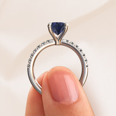Der oben gezeigte Platin Verlobungsring wird Crystal RND 2 genannt. Es ist ein Pavé Solitär Ring, da er einen zentralen Edelstein und ein Band mit Pavé-Fassung hat. Der klassische Pavé Solitär Verlobungsring ist in der Kombination Platin mit Platin und ist mit einem rund 7.3 mm Saphir-Mittelstein besetzt und das Band hat eine Pavé-Fassung mit Lab grown Diamant. Jedes Schmuckstück ist einzigartig in jeder Hinsicht! Einfach nach Ihren Wünschen anzupassen. Um den zentralen Stein noch mehr zu betonen, hat das Band eine Pavé-Fassung mit weiteren Saphir. Durch die offenen Krappen kann das Licht aus mehreren Winkeln auf den Saphir treffen und der Saphir-Ring funkelt noch mehr. Das obere Foto zeigt die leidenschaftlich handgefertigten Details des Rings. Die hohe Positionierung der Mittelstein ist ein echter Blickfang. Der perfekte Verlobungsring für das Kronjuwel Ihres Lebens!Nachdem Sie Ihre Bestellung aufgegeben haben, beginnen unsere Goldschmiede mit dem kreativen Prozess der Herstellung Ihres Crystal RND 2 Verlobungsring. Wir haben keine Lager. Das ist vorteilhaft, da diese Kosten nicht an Sie weitergegeben werden. Daher sind wir in der Lage, Schmuck zu außergewöhnlich niedrigen Preisen anzubieten.Verschiedene Arten von neuen Ringen werden täglich von unserem Team angefertigt. Vielleicht haben Sie irgendwo einen Pavé Solitär Verlobungsring gefunden. Einen, den Sie Ihrem Liebsten schenken möchten. Bitte zögern Sie nicht, unseren Schmuckdesignern Ihre Gedanken und Ihr Design zu zeigen. Wir würden gerne Ihr Design in einen klassische Verlobungsring verwandeln. Sie können die Entwicklungen Ihres Ringdesigns verfolgen, da wir sehr detaillierte 3D-Zeichnungen verwenden. Darüber hinaus können Sie einen Dummy des Designs bestellen. Ein Dummy ist ein Kunststoffring, der nach Ihrem Ringdesign gestaltet werden kann. Sie können ihn anprobieren und prüfen, ob der Verlobungsring Ihren Vorstellungen entspricht. Wir senden Ihnen gerne ein unverbindliches Angebot zu einem fairen Preis/Leistungsverhältnis. Das Angebot wird Sie angesichts der Qualität des Rings und der Edelsteine verblüffen.Um es einfacher zu machen, bieten wir eine kostenlose 30-tägige Rücksendung.