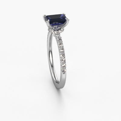 Der oben gezeigte Platin Verlobungsring wird Crystal EME 4 genannt. Es ist ein Pavé Solitär Ring, da er einen zentralen Edelstein und ein Band mit Pavé-Fassung hat. Der modische Pavé Solitär Verlobungsring ist in der Kombination Platin mit Platin und ist mit einem smaragd schliff 7x5 mm Saphir-Mittelstein besetzt und das Band hat eine Pavé-Fassung mit Lab grown Diamant. Jedes Schmuckstück ist um Ihrem Finger Glanz zu verleihen. Jeder Ring wird von unseren Goldschmieden liebevoll von Hand gefertigt. Um den zentralen Stein noch mehr zu betonen, hat das Band eine Pavé-Fassung mit weiteren Saphir. Durch die offenen Krappen kann das Licht aus mehreren Winkeln auf den Saphir treffen und der Saphir-Ring funkelt noch mehr. Das obere Foto zeigt die leidenschaftlich handgefertigten Details des Rings. Die hohe Positionierung der Mittelstein ist ein echter Blickfang. Der perfekte Verlobungsring für das Kronjuwel Ihres Lebens!Nach Erhalt Ihrer Bestellung beginnen unsere Goldschmiede mit Leidenschaft den kreativen Prozess und fertigen Ihren Verlobungsring in unserem eigenen Studio. Da wir keine großen Lager haben, werden diese Kosten nicht an Sie weitergegeben. Unsere Preisgestaltung ist der Beweis dafür! Wir bieten Schmuck zum niedrigsten Preis, garantiert.Unser Team fügt unserer Online-Kollektion täglich neue Designs hinzu. Unsere Designer und Goldschmiede arbeiten zusammen, um das beste Design zu kreieren. Wir bemühen uns, eine vielfältige Kollektion von Schmuckstücken anzubieten. Vielleicht haben Sie ein bestimmtes Design im Sinn. Eines, dass Sie irgendwo gesehen haben. Gerne geben wir Ihnen eine kostenlose Beratung. Wir machen Ihnen ein Angebot, basierend auf einem fairen Preis/Leistungsverhältnis, das Sie verblüffen wird.Um es einfacher zu machen, bieten wir eine kostenlose 30-tägige Rücksendung.
