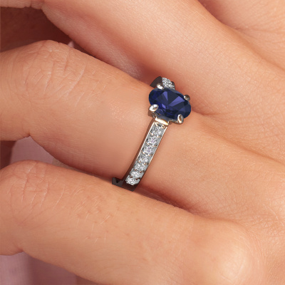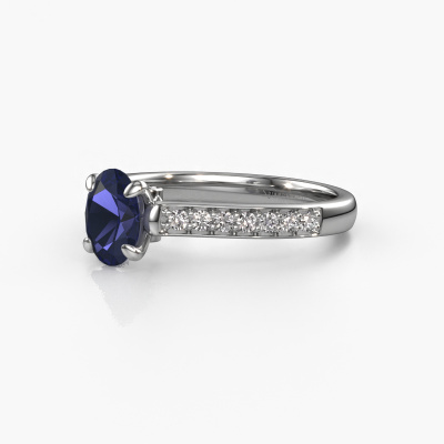 Der oben gezeigte Ring wird Valorie ovl 2 genannt. Es ist ein Pavé Solitär Ring, da er einen zentralen Edelstein und ein Band mit Pavé-Fassung hat. Dieser Platin ring ist mit einem 7x5 mm oval Saphir-Mittelstein besetzt und das Band hat eine Pavé-Fassung mit Lab grown Diamant. Jedes Schmuckstück wird hergestellt mit Leidenschaft und Liebe, von einem unserer Meister-Goldschmiede.Dieser modische Platin Pavé Solitär Verlobungsring mit Pavé-Fassung hat einen exquisiten, oval Saphir als Mittelstein. Um den zentralen Stein noch mehr zu betonen, hat das Band eine Pavé-Fassung mit weiteren Lab grown Diamant. Durch die offenen Krappen kann das Licht aus mehreren Winkeln auf den Saphir treffen und der Saphir-Ring funkelt noch mehr. Das obere Foto zeigt die leidenschaftlich handgefertigten Details des Rings. Die hohe Positionierung der Mittelstein ist ein echter Blickfang. Der perfekte Verlobungsring für das Kronjuwel Ihres Lebens!Haben Sie ein bestimmtes Budget? Sie können uns gerne kontaktieren, damit wir Ihre Optionen besprechen können. Wir bieten unsere Verlobungsringe zum garantiert besten Preis, denn wir fertigen sie auf Bestellung. Solche Preise finden Sie nirgendwo anders!Unser Team fügt unserer Online-Kollektion täglich neue Designs hinzu. Unsere Designer und Goldschmiede arbeiten zusammen, um das beste Design zu kreieren. Wir bemühen uns, eine vielfältige Kollektion von Schmuckstücken anzubieten. Vielleicht haben Sie ein bestimmtes Design im Sinn. Eines, dass Sie irgendwo gesehen haben. Gerne geben wir Ihnen eine kostenlose Beratung. Wir machen Ihnen ein Angebot, basierend auf einem fairen Preis/Leistungsverhältnis, das Sie verblüffen wird.Um es einfacher zu machen, bieten wir eine kostenlose 30-tägige Rücksendung.