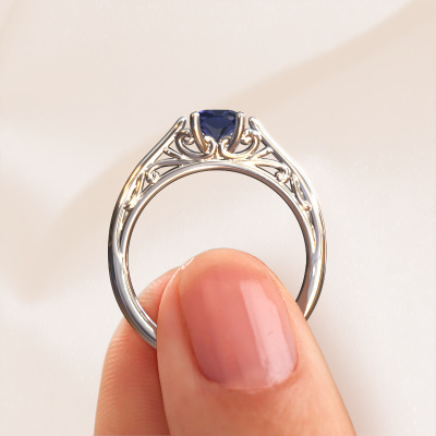 Dieser Verlobungsring aus 14 Karat Weißgold mit 5 mm Saphir heißt Shannon cus. Was macht Ihre Beziehung einzigartig? Was hat sie an sich, was Sie dazu bringt, auf die Knie zu fallen? Die einzigartige Verbindung zwischen Ihnen beiden wird durch einen ebenso einzigartigen Ring unterstrichen. Ein einzigartiger Solitär Verlobungsring, der nur für sie gemacht wurde. Deshalb passt dieser Ring wie angegossen. Jedes einzelne Detail dieses ajour, Weißgold Saphir Verlobungsring wird von unserem erfahrenen Goldschmieden in unserem eigenen Studio von Hand ausgesucht, bearbeitet und poliert. Das Endprodukt ist ein exquisiter Ring, einzigartig und bis zur Perfektion gebracht. Danach streben unsere erfahrenen Juweliere. Jedes Schmuckstück wird nur für Sie persönlich hergestellt, mit Liebe zum Detail und Design.Mit unserer modernen Technik können wir Schmuckstücke von höchster Qualität mit größter Sorgfalt für Sie entwerfen und anpassen. Unsere Verlobungsringe sind immer um 30 Prozent günstiger als bei anderen Juwelieren. Wir fertigen Verlobungsringe auf Bestellung, also müssen wir keine großen Lager unterhalten. Wenn Sie ein bestimmtes Budget haben, beraten wir Sie gerne entsprechend.Unser Team fügt unserer Online-Kollektion täglich neue Designs hinzu. Unsere Designer und Goldschmiede arbeiten zusammen, um das beste Design zu kreieren. Wir bemühen uns, eine vielfältige Kollektion von Schmuckstücken anzubieten. Vielleicht haben Sie ein bestimmtes Design im Sinn. Eines, dass Sie irgendwo gesehen haben. Gerne geben wir Ihnen eine kostenlose Beratung. Wir machen Ihnen ein Angebot, basierend auf einem fairen Preis/Leistungsverhältnis, das Sie verblüffen wird.Um es einfacher zu machen, bieten wir eine kostenlose 30-tägige Rücksendung.