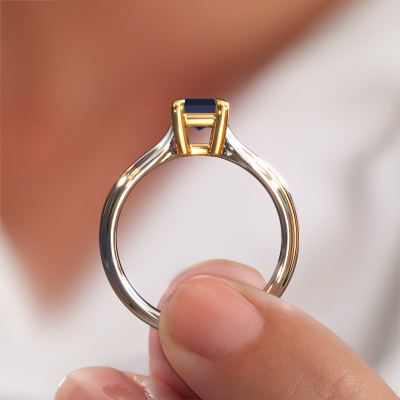 Der oben gezeigte Verlobungsring wird Antonia eme 1 genannt. Wir nennen das einen Solitär-Ring, denn er hat einen einzelnen Edelstein. Es ist ein 14 Karat Weißgold ring, mit 7x5 mm smaragd schliff Saphir. Das Besondere an unserem Konfigurator ist dass Sie selbst einem Schmuckstück zusammenstellen können zu einem eigenen persönlichen Schmuckstück. Dieser Solitäre Verlobungsring ist gefertigt in der Edelmetall Kombination Weißgold mit Gold, aber Sie können also auch wählen aus anderen Farben. Jedes Schmuckstück ist um Ihrem Finger Glanz zu verleihen. Jeder Ring wird von unseren Goldschmieden liebevoll von Hand gefertigt. Der Solitär-Verlobungsring ist eine Sonderform des Verlobungsring. Seine offenen Krappen ermöglichen, dass Licht aus mehr Winkeln auf den Edelstein trifft. Dieser Fantasie Verlobungsring ist durch die hohe Positionierung des Edelsteins ein atemberaubender Blickfang. Wir schmücken diesen Solitär-Ring sorgfältig von Hand, damit Sie Ihren Anfrage mit einem einzigartigen Ring würdigen können. Die Liebe Ihres Lebens verdient nur das Beste. Da wir unsere eigenen Ringe entwerfen und liefern, können wir Ihnen einen Verlobungsring zu einem Preis anbieten, den Sie nirgendwo anders finden. Ein Ring wird auf Bestellung angefertigt, wodurch kein überschüssiges Material anfällt. So können wir Ihnen ein gutes Angebot zum besten Preis machen. Wir verstehen, dass es sich riskant anfühlt, Ihren Verlobungsring online zu kaufen. Jedoch helfen wir Ihnen gerne beim Designprozess unter Berücksichtigung Ihres Budgets.Unsere Designer und Goldschmiede arbeiten jeden Tag zusammen und versuchen, neue Schmuckstücke zu kreieren. Vielleicht haben Sie irgendwo einen schönen, Fantasie Verlobungsring gefunden, nach dem Ihr einzigartiger Ring gestaltet werden kann. Setzen Sie sich mit uns in Verbindung. Wir machen Ihnen ein Angebot, basierend auf einem fairen Preis/Leistungsverhältnis, das Sie begeistern wird.Um es einfacher zu machen, bieten wir eine kostenlose 30-tägige Rücksendung.