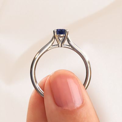 Der oben gezeigte Verlobungsring wird Mignon rnd 1 genannt. Wir nennen das einen Solitär-Ring, denn er hat einen einzelnen Edelstein. Es ist ein 14 Karat Weißgold ring, mit 5 mm rund Saphir. Das Besondere an unserem Konfigurator ist dass Sie selbst einem Schmuckstück zusammenstellen können zu einem eigenen persönlichen Schmuckstück. Dieser Solitäre Verlobungsring ist gefertigt in der Edelmetall Kombination Weißgold mit Weißgold, aber Sie können also auch wählen aus anderen Farben. Jedes Schmuckstück wird hergestellt mit Leidenschaft und Liebe, von einem unserer Meister-Goldschmiede. Der Solitär-Verlobungsring ist eine Sonderform des Verlobungsring. Seine offenen Krappen ermöglichen, dass Licht aus mehr Winkeln auf den Edelstein trifft. Dieser klassische Verlobungsring ist durch die hohe Positionierung des Edelsteins ein atemberaubender Blickfang. Wir schmücken diesen Solitär-Ring sorgfältig von Hand, damit Sie Ihren Anfrage mit einem einzigartigen Ring würdigen können. Die Liebe Ihres Lebens verdient nur das Beste. Nach Erhalt Ihrer Bestellung beginnen unsere Goldschmiede mit Leidenschaft den kreativen Prozess und fertigen Ihren Verlobungsring in unserem eigenen Studio. Da wir keine großen Lager haben, werden diese Kosten nicht an Sie weitergegeben. Unsere Preisgestaltung ist der Beweis dafür! Wir bieten Schmuck zum niedrigsten Preis, garantiert.Haben Sie irgendwo einen bestimmten Verlobungsring gefunden, den Sie Ihrem Liebsten schenken möchten? Sie können uns gerne sagen, was Sie wollen und wir werden Ihr Design in einen Einzigartigen klassische Verlobungsring verwandeln. Sie können die Entwicklungen Ihres Ringdesigns verfolgen, da wir 3D-Zeichnungen verwenden. Das gibt Ihnen eine realistische Vorschau, wie Ihr Design aussehen wird. Sie können auch einen Dummy vorbestellen. Ein Dummy ist ein Kunststoffring, der nach Ihrem Ringdesign gestaltet werden kann. Sie können ihn anprobieren und prüfen, ob seine Breite und Größe für Sie geeignet sind. Wir senden Ihnen gerne ein unverbindliches Angebot zu einem fairen Preis/Leistungsverhältnis. Sie werden in Anbetracht der Qualität des Rings und der Edelsteine überrascht sein.Um es einfacher zu machen, bieten wir eine kostenlose 30-tägige Rücksendung.