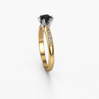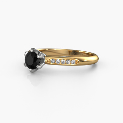 Der oben gezeigte Ring wird Tiffy 2 genannt. Es ist ein Pavé Solitär Ring, da er einen zentralen Edelstein und ein Band mit Pavé-Fassung hat. Dieser 14 Karat Gold ring ist mit einem 0.48 crt rund Schwarz Diamant-Mittelstein besetzt und das Band hat eine Pavé-Fassung mit Diamanten. Jedes Schmuckstück ist um Ihrem Finger Glanz zu verleihen. Jeder Ring wird von unseren Goldschmieden liebevoll von Hand gefertigt.Dieser traditionell Gold Pavé Solitär Verlobungsring mit Pavé-Fassung hat einen exquisiten, rund Schwarz Diamant als Mittelstein. Um den zentralen Stein noch mehr zu betonen, hat das Band eine Pavé-Fassung mit weiteren Diamanten. Durch die offenen Krappen kann das Licht aus mehreren Winkeln auf den Schwarz Diamant treffen und der Schwarz Diamant-Ring funkelt noch mehr. Das obere Foto zeigt die leidenschaftlich handgefertigten Details des Rings. Die hohe Positionierung der Mittelstein ist ein echter Blickfang. Der perfekte Verlobungsring für das Kronjuwel Ihres Lebens!Mit unserer modernen Technik können wir Schmuckstücke von höchster Qualität mit größter Sorgfalt für Sie entwerfen und anpassen. Unsere Verlobungsringe sind immer um 30 Prozent günstiger als bei anderen Juwelieren. Wir fertigen Verlobungsringe auf Bestellung, also müssen wir keine großen Lager unterhalten. Wenn Sie ein bestimmtes Budget haben, beraten wir Sie gerne entsprechend.Unsere Designer und Goldschmiede arbeiten jeden Tag zusammen und versuchen, neue Schmuckstücke zu kreieren. Vielleicht haben Sie irgendwo einen schönen, traditionell Verlobungsring gefunden, nach dem Ihr einzigartiger Ring gestaltet werden kann. Setzen Sie sich mit uns in Verbindung. Wir machen Ihnen ein Angebot, basierend auf einem fairen Preis/Leistungsverhältnis, das Sie begeistern wird.Um es einfacher zu machen, bieten wir eine kostenlose 30-tägige Rücksendung.