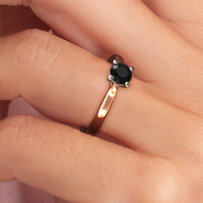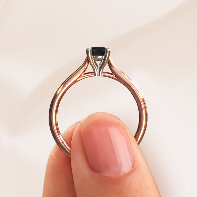 Der oben gezeigte Verlobungsring wird Mignon rnd 1 genannt. Wir nennen das einen Solitär-Ring, denn er hat einen einzelnen Edelstein. Es ist ein 14 Karat Roségold ring, mit 0.60 crt rund Schwarz Diamant. Das Besondere an unserem Konfigurator ist dass Sie selbst einem Schmuckstück zusammenstellen können zu einem eigenen persönlichen Schmuckstück. Dieser Solitäre Verlobungsring ist gefertigt in der Edelmetall Kombination Roségold mit Weißgold, aber Sie können also auch wählen aus anderen Farben. Jedes Schmuckstück wird hergestellt mit Leidenschaft und Liebe, von einem unserer Meister-Goldschmiede. Der Solitär-Verlobungsring ist eine Sonderform des Verlobungsring. Seine offenen Krappen ermöglichen, dass Licht aus mehr Winkeln auf den Edelstein trifft. Dieser klassische Verlobungsring ist durch die hohe Positionierung des Edelsteins ein atemberaubender Blickfang. Wir schmücken diesen Solitär-Ring sorgfältig von Hand, damit Sie Ihren Anfrage mit einem einzigartigen Ring würdigen können. Die Liebe Ihres Lebens verdient nur das Beste. Nach Erhalt Ihrer Bestellung beginnen unsere Goldschmiede mit Leidenschaft den kreativen Prozess und fertigen Ihren Verlobungsring in unserem eigenen Studio. Da wir keine großen Lager haben, werden diese Kosten nicht an Sie weitergegeben. Unsere Preisgestaltung ist der Beweis dafür! Wir bieten Schmuck zum niedrigsten Preis, garantiert.Haben Sie irgendwo einen bestimmten Verlobungsring gefunden, den Sie Ihrem Liebsten schenken möchten? Sie können uns gerne sagen, was Sie wollen und wir werden Ihr Design in einen Einzigartigen klassische Verlobungsring verwandeln. Sie können die Entwicklungen Ihres Ringdesigns verfolgen, da wir 3D-Zeichnungen verwenden. Das gibt Ihnen eine realistische Vorschau, wie Ihr Design aussehen wird. Sie können auch einen Dummy vorbestellen. Ein Dummy ist ein Kunststoffring, der nach Ihrem Ringdesign gestaltet werden kann. Sie können ihn anprobieren und prüfen, ob seine Breite und Größe für Sie geeignet sind. Wir senden Ihnen gerne ein unverbindliches Angebot zu einem fairen Preis/Leistungsverhältnis. Sie werden in Anbetracht der Qualität des Rings und der Edelsteine überrascht sein.Um es einfacher zu machen, bieten wir eine kostenlose 30-tägige Rücksendung.