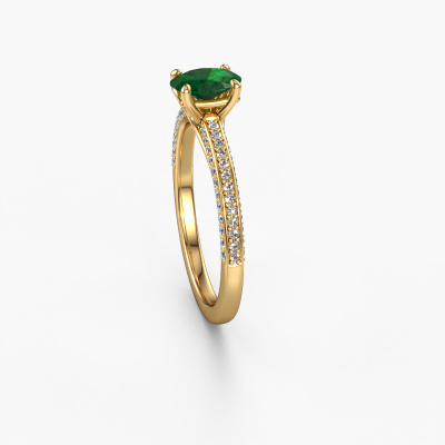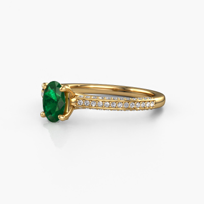 Der oben gezeigte Ring wird Elenore ovl genannt. Es ist ein Pavé Solitär Ring, da er einen zentralen Edelstein und ein Band mit Pavé-Fassung hat. Dieser 14 Karat Gold ring ist mit einem 6.5x4.5 mm oval Smaragd-Mittelstein besetzt und das Band hat eine Pavé-Fassung mit Diamanten. Jedes Schmuckstück wird hergestellt von einem Team leidenschaftlicher Goldschmiede und Schmuckdesigner. Das wird Ihr Kronjuwel unbedingt zu einem Blickfang machen.Dieser exklusive Gold Pavé Solitär Verlobungsring mit Pavé-Fassung hat einen exquisiten, oval Smaragd als Mittelstein. Um den zentralen Stein noch mehr zu betonen, hat das Band eine Pavé-Fassung mit weiteren Diamanten. Durch die offenen Krappen kann das Licht aus mehreren Winkeln auf den Smaragd treffen und der Smaragd-Ring funkelt noch mehr. Das obere Foto zeigt die leidenschaftlich handgefertigten Details des Rings. Die hohe Positionierung der Mittelstein ist ein echter Blickfang. Der perfekte Verlobungsring für das Kronjuwel Ihres Lebens!Nachdem Sie Ihre Bestellung aufgegeben haben, beginnen unsere Goldschmiede mit dem kreativen Prozess der Herstellung Ihres Elenore ovl Verlobungsring. Wir haben keine Lager. Das ist vorteilhaft, da diese Kosten nicht an Sie weitergegeben werden. Daher sind wir in der Lage, Schmuck zu außergewöhnlich niedrigen Preisen anzubieten.Haben Sie irgendwo einen bestimmten Verlobungsring gefunden, den Sie Ihrem Liebsten schenken möchten? Sie können uns gerne sagen, was Sie wollen und wir werden Ihr Design in einen Einzigartigen exklusive Verlobungsring verwandeln. Sie können die Entwicklungen Ihres Ringdesigns verfolgen, da wir 3D-Zeichnungen verwenden. Das gibt Ihnen eine realistische Vorschau, wie Ihr Design aussehen wird. Sie können auch einen Dummy vorbestellen. Ein Dummy ist ein Kunststoffring, der nach Ihrem Ringdesign gestaltet werden kann. Sie können ihn anprobieren und prüfen, ob seine Breite und Größe für Sie geeignet sind. Wir senden Ihnen gerne ein unverbindliches Angebot zu einem fairen Preis/Leistungsverhältnis. Sie werden in Anbetracht der Qualität des Rings und der Edelsteine überrascht sein.Um es einfacher zu machen, bieten wir eine kostenlose 30-tägige Rücksendung.