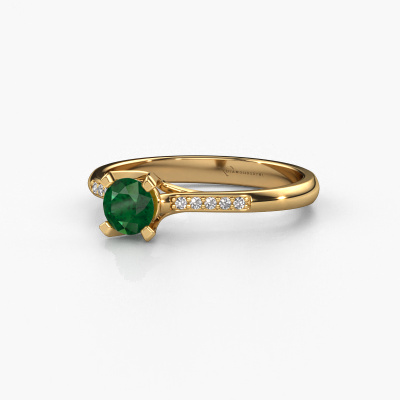 Der oben gezeigte Ring wird Isa 2 genannt. Es ist ein Pavé Solitär Ring, da er einen zentralen Edelstein und ein Band mit Pavé-Fassung hat. Dieser 14 Karat Gold ring ist mit einem 4.2 mm rund Smaragd-Mittelstein besetzt und das Band hat eine Pavé-Fassung mit Diamanten. Jedes Schmuckstück ist um Ihrem Finger Glanz zu verleihen. Jeder Ring wird von unseren Goldschmieden liebevoll von Hand gefertigt.Dieser klassische Gold Pavé Solitär Verlobungsring mit Pavé-Fassung hat einen exquisiten, rund Smaragd als Mittelstein. Um den zentralen Stein noch mehr zu betonen, hat das Band eine Pavé-Fassung mit weiteren Diamanten. Durch die offenen Krappen kann das Licht aus mehreren Winkeln auf den Smaragd treffen und der Smaragd-Ring funkelt noch mehr. Das obere Foto zeigt die leidenschaftlich handgefertigten Details des Rings. Die hohe Positionierung der Mittelstein ist ein echter Blickfang. Der perfekte Verlobungsring für das Kronjuwel Ihres Lebens!Nach Erhalt Ihrer Bestellung beginnen unsere Goldschmiede mit Leidenschaft den kreativen Prozess und fertigen Ihren Verlobungsring in unserem eigenen Studio. Da wir keine großen Lager haben, werden diese Kosten nicht an Sie weitergegeben. Unsere Preisgestaltung ist der Beweis dafür! Wir bieten Schmuck zum niedrigsten Preis, garantiert.Verschiedene Arten von neuen Ringen werden täglich von unserem Team angefertigt. Vielleicht haben Sie irgendwo einen Pavé Solitär Verlobungsring gefunden. Einen, den Sie Ihrem Liebsten schenken möchten. Bitte zögern Sie nicht, unseren Schmuckdesignern Ihre Gedanken und Ihr Design zu zeigen. Wir würden gerne Ihr Design in einen klassische Verlobungsring verwandeln. Sie können die Entwicklungen Ihres Ringdesigns verfolgen, da wir sehr detaillierte 3D-Zeichnungen verwenden. Darüber hinaus können Sie einen Dummy des Designs bestellen. Ein Dummy ist ein Kunststoffring, der nach Ihrem Ringdesign gestaltet werden kann. Sie können ihn anprobieren und prüfen, ob der Verlobungsring Ihren Vorstellungen entspricht. Wir senden Ihnen gerne ein unverbindliches Angebot zu einem fairen Preis/Leistungsverhältnis. Das Angebot wird Sie angesichts der Qualität des Rings und der Edelsteine verblüffen.Um es einfacher zu machen, bieten wir eine kostenlose 30-tägige Rücksendung.