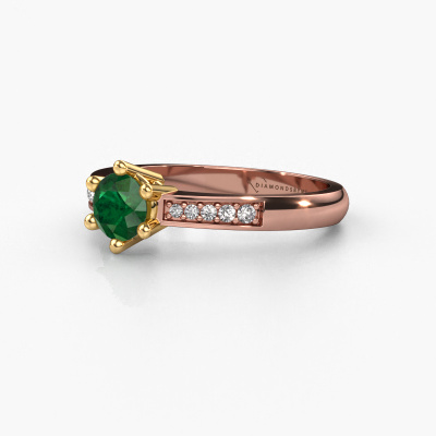 Der oben gezeigte Ring wird Luna 2 genannt. Es ist ein Pavé Solitär Ring, da er einen zentralen Edelstein und ein Band mit Pavé-Fassung hat. Dieser 14 Karat Roségold ring ist mit einem 5 mm rund Smaragd-Mittelstein besetzt und das Band hat eine Pavé-Fassung mit Diamanten. Jedes Schmuckstück ist einzigartig in jeder Hinsicht! Einfach nach Ihren Wünschen anzupassen.Dieser klassische Roségold Pavé Solitär Verlobungsring mit Pavé-Fassung hat einen exquisiten, rund Smaragd als Mittelstein. Um den zentralen Stein noch mehr zu betonen, hat das Band eine Pavé-Fassung mit weiteren Diamanten. Durch die offenen Krappen kann das Licht aus mehreren Winkeln auf den Smaragd treffen und der Smaragd-Ring funkelt noch mehr. Das obere Foto zeigt die leidenschaftlich handgefertigten Details des Rings. Die hohe Positionierung der Mittelstein ist ein echter Blickfang. Der perfekte Verlobungsring für das Kronjuwel Ihres Lebens!Da wir unsere eigenen Ringe entwerfen und liefern, können wir Ihnen einen Verlobungsring zu einem Preis anbieten, den Sie nirgendwo anders finden. Ein Ring wird auf Bestellung angefertigt, wodurch kein überschüssiges Material anfällt. So können wir Ihnen ein gutes Angebot zum besten Preis machen. Wir verstehen, dass es sich riskant anfühlt, Ihren Verlobungsring online zu kaufen. Jedoch helfen wir Ihnen gerne beim Designprozess unter Berücksichtigung Ihres Budgets.Unser Team fügt unserer Online-Kollektion täglich neue Designs hinzu. Unsere Designer und Goldschmiede arbeiten zusammen, um das beste Design zu kreieren. Wir bemühen uns, eine vielfältige Kollektion von Schmuckstücken anzubieten. Vielleicht haben Sie ein bestimmtes Design im Sinn. Eines, dass Sie irgendwo gesehen haben. Gerne geben wir Ihnen eine kostenlose Beratung. Wir machen Ihnen ein Angebot, basierend auf einem fairen Preis/Leistungsverhältnis, das Sie verblüffen wird.Um es einfacher zu machen, bieten wir eine kostenlose 30-tägige Rücksendung.
