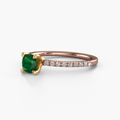 Der oben gezeigte Roségold Verlobungsring wird Crystal CUS 2 genannt. Es ist ein Pavé Solitär Ring, da er einen zentralen Edelstein und ein Band mit Pavé-Fassung hat. Der klassische Pavé Solitär Verlobungsring ist in der Kombination 14 Karat Roségold mit Gold und ist mit einem cussion 5 mm Smaragd-Mittelstein besetzt und das Band hat eine Pavé-Fassung mit Diamanten. Jedes Schmuckstück wird von unseren Meister-Goldschmieden in unserem eigenen Studio für Sie gefertigt. Um den zentralen Stein noch mehr zu betonen, hat das Band eine Pavé-Fassung mit weiteren Smaragd. Durch die offenen Krappen kann das Licht aus mehreren Winkeln auf den Smaragd treffen und der Smaragd-Ring funkelt noch mehr. Das obere Foto zeigt die leidenschaftlich handgefertigten Details des Rings. Die hohe Positionierung der Mittelstein ist ein echter Blickfang. Der perfekte Verlobungsring für das Kronjuwel Ihres Lebens!Nachdem Sie Ihre Bestellung aufgegeben haben, beginnen unsere Goldschmiede mit dem kreativen Prozess der Herstellung Ihres Crystal CUS 2 Verlobungsring. Wir haben keine Lager. Das ist vorteilhaft, da diese Kosten nicht an Sie weitergegeben werden. Daher sind wir in der Lage, Schmuck zu außergewöhnlich niedrigen Preisen anzubieten.Verschiedene Arten von neuen Ringen werden täglich von unserem Team angefertigt. Vielleicht haben Sie irgendwo einen Pavé Solitär Verlobungsring gefunden. Einen, den Sie Ihrem Liebsten schenken möchten. Bitte zögern Sie nicht, unseren Schmuckdesignern Ihre Gedanken und Ihr Design zu zeigen. Wir würden gerne Ihr Design in einen klassische Verlobungsring verwandeln. Sie können die Entwicklungen Ihres Ringdesigns verfolgen, da wir sehr detaillierte 3D-Zeichnungen verwenden. Darüber hinaus können Sie einen Dummy des Designs bestellen. Ein Dummy ist ein Kunststoffring, der nach Ihrem Ringdesign gestaltet werden kann. Sie können ihn anprobieren und prüfen, ob der Verlobungsring Ihren Vorstellungen entspricht. Wir senden Ihnen gerne ein unverbindliches Angebot zu einem fairen Preis/Leistungsverhältnis. Das Angebot wird Sie angesichts der Qualität des Rings und der Edelsteine verblüffen.Um es einfacher zu machen, bieten wir eine kostenlose 30-tägige Rücksendung.