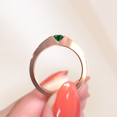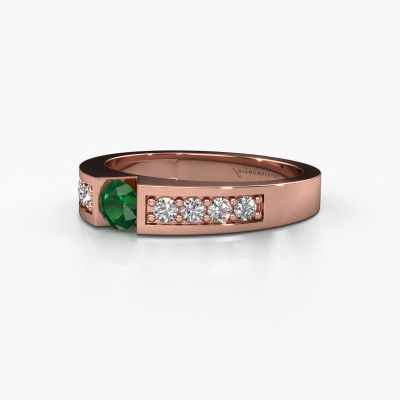Der oben gezeigte Ring wird Lizzy 2 genannt. Es ist ein Pavé Solitär Ring, da er einen zentralen Edelstein und ein Band mit Pavé-Fassung hat. Dieser 14 Karat Roségold ring ist mit einem 4.2 mm rund Smaragd-Mittelstein besetzt und das Band hat eine Pavé-Fassung mit Diamanten. Jedes Schmuckstück lässt Ihren Finger erstrahlen. Ihr Ring ist mit Liebe von unseren Goldschmieden handgefertigt.Dieser moderne Roségold Pavé Solitär Verlobungsring mit Pavé-Fassung hat einen exquisiten, rund Smaragd als Mittelstein. Um den zentralen Stein noch mehr zu betonen, hat das Band eine Pavé-Fassung mit weiteren Diamanten. Durch die offenen Krappen kann das Licht aus mehreren Winkeln auf den Smaragd treffen und der Smaragd-Ring funkelt noch mehr. Das obere Foto zeigt die leidenschaftlich handgefertigten Details des Rings. Die hohe Positionierung der Mittelstein ist ein echter Blickfang. Der perfekte Verlobungsring für das Kronjuwel Ihres Lebens!Durch die Kombination modernster Technik mit uralter Handwerkskunst können wir alle Verlobungsringe in unserem eigenen Studio anfertigen. Jedes Schmuckstück wird auf Anfrage gefertigt. Das ist vorteilhaft, weil wir Ihnen dadurch einen Preis anbieten können, den Sie nirgendwo anders finden.Unser Team fügt unserer Online-Kollektion täglich neue Designs hinzu. Unsere Designer und Goldschmiede arbeiten zusammen, um das beste Design zu kreieren. Wir bemühen uns, eine vielfältige Kollektion von Schmuckstücken anzubieten. Vielleicht haben Sie ein bestimmtes Design im Sinn. Eines, dass Sie irgendwo gesehen haben. Gerne geben wir Ihnen eine kostenlose Beratung. Wir machen Ihnen ein Angebot, basierend auf einem fairen Preis/Leistungsverhältnis, das Sie verblüffen wird.Um es einfacher zu machen, bieten wir eine kostenlose 30-tägige Rücksendung.
