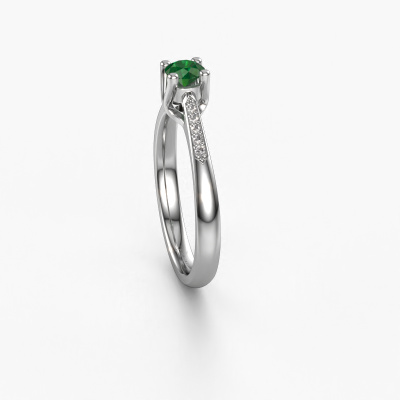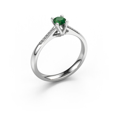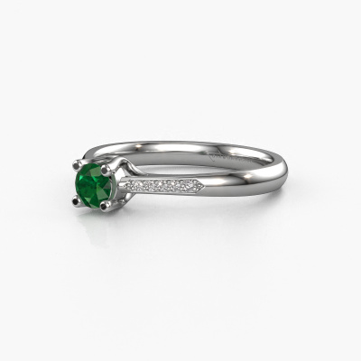 Der oben gezeigte Ring wird Janna 2 genannt. Es ist ein Pavé Solitär Ring, da er einen zentralen Edelstein und ein Band mit Pavé-Fassung hat. Dieser 14 Karat Weißgold ring ist mit einem 4 mm rund Smaragd-Mittelstein besetzt und das Band hat eine Pavé-Fassung mit Diamanten. Jedes Schmuckstück wird von unseren Meister-Goldschmieden in unserem eigenen Studio für Sie gefertigt.Dieser klassische Weißgold Pavé Solitär Verlobungsring mit Pavé-Fassung hat einen exquisiten, rund Smaragd als Mittelstein. Um den zentralen Stein noch mehr zu betonen, hat das Band eine Pavé-Fassung mit weiteren Diamanten. Durch die offenen Krappen kann das Licht aus mehreren Winkeln auf den Smaragd treffen und der Smaragd-Ring funkelt noch mehr. Das obere Foto zeigt die leidenschaftlich handgefertigten Details des Rings. Die hohe Positionierung der Mittelstein ist ein echter Blickfang. Der perfekte Verlobungsring für das Kronjuwel Ihres Lebens!Durch die Kombination modernster Technik mit uralter Handwerkskunst können wir alle Verlobungsringe in unserem eigenen Studio anfertigen. Jedes Schmuckstück wird auf Anfrage gefertigt. Das ist vorteilhaft, weil wir Ihnen dadurch einen Preis anbieten können, den Sie nirgendwo anders finden.Haben Sie einen bestimmten Ring im Sinn? Eines, dass Sie irgendwo gesehen haben. Bitte zögern Sie nicht, uns zu sagen, was Sie wollen und wir werden Ihr Design in einen Einzigartigen Verlobungsring verwandeln. Sie können die Entwicklungen Ihres Ringdesigns verfolgen, da wir 3D-Zeichnungen verwenden. Das gibt Ihnen eine realistische Vorschau Ihres Designs. Wir senden Ihnen gerne ein unverbindliches Angebot zu einem fairen Preis/Leistungsverhältnis. Es wird Sie erstaunen.Um es einfacher zu machen, bieten wir eine kostenlose 30-tägige Rücksendung.