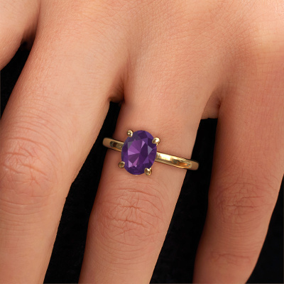 Dieser Ring aus 14 Karat Gold heißt Simone OVL 1 und hat 9x7 mm Amethyst. Dieser fein 14 Karat Gold Solitär Verlobungsring ist ein wahres Kunstwerk! Die Ornamente werden mit viel Geduld und großer Leidenschaft gefertigt. Um diesen Ring mit großer Präzision zu schaffen, erfordert dieses Handwerk ein scharfes Auge und eine geschickte Hand. Eine Herausforderung, die bei unseren erfahrenen Juwelieren ein Feuer entfacht. Die exquisiten Amethysten sind auf eine besondere Art und Weise gefasst, so dass sie noch mehr hervorstechen. Dies verleiht dem Ring eine noch glamourösere Erscheinung. Der Ring an sich ist schon wegen der Edelsteine einzigartig, die wir speziell für diesen Ring auswählen. Obendrein wählen Sie die Edelmetalle aus, mit denen Ihr einzigartiger Ring für die außergewöhnlichste Frau Ihres Lebens gemacht wird! Jedes Schmuckstück wird von unseren Meister-Goldschmieden in unserem eigenen Studio für Sie gefertigt.Nach Erhalt Ihrer Bestellung beginnen unsere Goldschmiede mit Leidenschaft den kreativen Prozess und fertigen Ihren Verlobungsring in unserem eigenen Studio. Da wir keine großen Lager haben, werden diese Kosten nicht an Sie weitergegeben. Unsere Preisgestaltung ist der Beweis dafür! Wir bieten Schmuck zum niedrigsten Preis, garantiert.Unsere Designer und Goldschmiede arbeiten jeden Tag zusammen und versuchen, neue Schmuckstücke zu kreieren. Vielleicht haben Sie irgendwo einen schönen, Luxus Verlobungsring gefunden, nach dem Ihr einzigartiger Ring gestaltet werden kann. Setzen Sie sich mit uns in Verbindung. Wir machen Ihnen ein Angebot, basierend auf einem fairen Preis/Leistungsverhältnis, das Sie begeistern wird.Um es einfacher zu machen, bieten wir eine kostenlose 30-tägige Rücksendung.