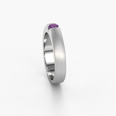 Dieser Verlobungsring aus Platin mit 3.4 mm Amethyst heißt Theresia. Die Spann Fassung macht ihn zu einem besonderen Verlobungsring, weil sie den Amethyst betont. Unser erfahrener Goldschmiede verwendet spezielle Techniken, um den Amethyst in diesen Platin Ring zu setzen. Mit diesen Techniken wird das Licht frei reflektiert. Das verleiht dem Ring maximalen Glanz und eine glamouröse Erscheinung. Ein wahres Kunstwerk! Das Endprodukt ist ein einzigartiger Ring mit einer trendigen Erscheinung, der von unserem erfahrenen Juwelier leidenschaftlich in Handarbeit gefertigt wird. Ein einzigartiger Ring, entworfen für die Liebe Ihres Lebens. Wenn Sie diesen Ring wählen, empfehlen wir Ihnen einen Breiten Edelstein wie einen Diamant oder Saphir. Der Ring muss während der Herstellung viel Druck aushalten können. Jedes Schmuckstück wird von unseren Meister-Goldschmieden in unserem eigenen Studio für Sie gefertigt.Mit unserer modernen Technik können wir Schmuckstücke von höchster Qualität mit größter Sorgfalt für Sie entwerfen und anpassen. Unsere Verlobungsringe sind immer um 30 Prozent günstiger als bei anderen Juwelieren. Wir fertigen Verlobungsringe auf Bestellung, also müssen wir keine großen Lager unterhalten. Wenn Sie ein bestimmtes Budget haben, beraten wir Sie gerne entsprechend.Verschiedene Arten von neuen Ringen werden täglich von unserem Team angefertigt. Vielleicht haben Sie irgendwo einen Solitär Verlobungsring gefunden. Einen, den Sie Ihrem Liebsten schenken möchten. Bitte zögern Sie nicht, unseren Schmuckdesignern Ihre Gedanken und Ihr Design zu zeigen. Wir würden gerne Ihr Design in einen moderne Verlobungsring verwandeln. Sie können die Entwicklungen Ihres Ringdesigns verfolgen, da wir sehr detaillierte 3D-Zeichnungen verwenden. Darüber hinaus können Sie einen Dummy des Designs bestellen. Ein Dummy ist ein Kunststoffring, der nach Ihrem Ringdesign gestaltet werden kann. Sie können ihn anprobieren und prüfen, ob der Verlobungsring Ihren Vorstellungen entspricht. Wir senden Ihnen gerne ein unverbindliches Angebot zu einem fairen Preis/Leistungsverhältnis. Das Angebot wird Sie angesichts der Qualität des Rings und der Edelsteine verblüffen.Um es einfacher zu machen, bieten wir eine kostenlose 30-tägige Rücksendung.