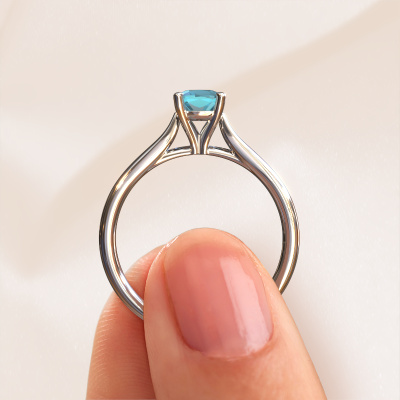Dieser Ring aus 14 Karat Weißgold heißt Mignon cus 1 und hat 5 mm Blau Topas. Dieser gerade 14 Karat Weißgold Solitär Verlobungsring ist ein wahres Kunstwerk! Die Ornamente werden mit viel Geduld und großer Leidenschaft gefertigt. Um diesen Ring mit großer Präzision zu schaffen, erfordert dieses Handwerk ein scharfes Auge und eine geschickte Hand. Eine Herausforderung, die bei unseren erfahrenen Juwelieren ein Feuer entfacht. Die exquisiten Blaue Topas sind auf eine besondere Art und Weise gefasst, so dass sie noch mehr hervorstechen. Dies verleiht dem Ring eine noch glamourösere Erscheinung. Der Ring an sich ist schon wegen der Edelsteine einzigartig, die wir speziell für diesen Ring auswählen. Obendrein wählen Sie die Edelmetalle aus, mit denen Ihr einzigartiger Ring für die außergewöhnlichste Frau Ihres Lebens gemacht wird! Jedes Schmuckstück wird hergestellt von einem Team leidenschaftlicher Goldschmiede und Schmuckdesigner. Das wird Ihr Kronjuwel unbedingt zu einem Blickfang machen.Haben Sie ein bestimmtes Budget? Sie können uns gerne kontaktieren, damit wir Ihre Optionen besprechen können. Wir bieten unsere Verlobungsringe zum garantiert besten Preis, denn wir fertigen sie auf Bestellung. Solche Preise finden Sie nirgendwo anders!Verschiedene Arten von neuen Ringen werden täglich von unserem Team angefertigt. Vielleicht haben Sie irgendwo einen Solitär Verlobungsring gefunden. Einen, den Sie Ihrem Liebsten schenken möchten. Bitte zögern Sie nicht, unseren Schmuckdesignern Ihre Gedanken und Ihr Design zu zeigen. Wir würden gerne Ihr Design in einen Luxus Verlobungsring verwandeln. Sie können die Entwicklungen Ihres Ringdesigns verfolgen, da wir sehr detaillierte 3D-Zeichnungen verwenden. Darüber hinaus können Sie einen Dummy des Designs bestellen. Ein Dummy ist ein Kunststoffring, der nach Ihrem Ringdesign gestaltet werden kann. Sie können ihn anprobieren und prüfen, ob der Verlobungsring Ihren Vorstellungen entspricht. Wir senden Ihnen gerne ein unverbindliches Angebot zu einem fairen Preis/Leistungsverhältnis. Das Angebot wird Sie angesichts der Qualität des Rings und der Edelsteine verblüffen.Um es einfacher zu machen, bieten wir eine kostenlose 30-tägige Rücksendung.