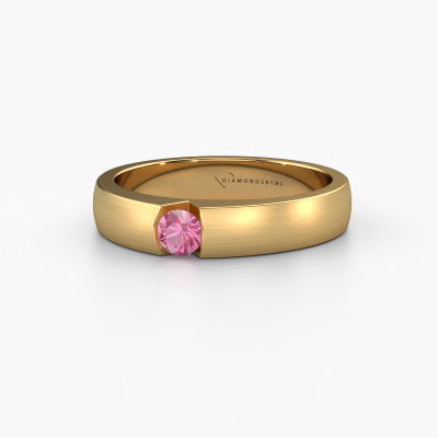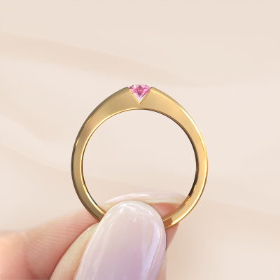 Dieser Verlobungsring aus 14 Karat Gold mit 3.4 mm Pink Saphir heißt Theresia. Die Spann Fassung macht ihn zu einem besonderen Verlobungsring, weil sie den Pink Saphir betont. Unser erfahrener Goldschmiede verwendet spezielle Techniken, um den Pink Saphir in diesen Gold Ring zu setzen. Mit diesen Techniken wird das Licht frei reflektiert. Das verleiht dem Ring maximalen Glanz und eine glamouröse Erscheinung. Ein wahres Kunstwerk! Das Endprodukt ist ein einzigartiger Ring mit einer trendigen Erscheinung, der von unserem erfahrenen Juwelier leidenschaftlich in Handarbeit gefertigt wird. Ein einzigartiger Ring, entworfen für die Liebe Ihres Lebens. Wenn Sie diesen Ring wählen, empfehlen wir Ihnen einen Breiten Edelstein wie einen Diamant oder Saphir. Der Ring muss während der Herstellung viel Druck aushalten können. Jedes Schmuckstück wird von unseren Meister-Goldschmieden in unserem eigenen Studio für Sie gefertigt.Mit unserer modernen Technik können wir Schmuckstücke von höchster Qualität mit größter Sorgfalt für Sie entwerfen und anpassen. Unsere Verlobungsringe sind immer um 30 Prozent günstiger als bei anderen Juwelieren. Wir fertigen Verlobungsringe auf Bestellung, also müssen wir keine großen Lager unterhalten. Wenn Sie ein bestimmtes Budget haben, beraten wir Sie gerne entsprechend.Verschiedene Arten von neuen Ringen werden täglich von unserem Team angefertigt. Vielleicht haben Sie irgendwo einen Solitär Verlobungsring gefunden. Einen, den Sie Ihrem Liebsten schenken möchten. Bitte zögern Sie nicht, unseren Schmuckdesignern Ihre Gedanken und Ihr Design zu zeigen. Wir würden gerne Ihr Design in einen moderne Verlobungsring verwandeln. Sie können die Entwicklungen Ihres Ringdesigns verfolgen, da wir sehr detaillierte 3D-Zeichnungen verwenden. Darüber hinaus können Sie einen Dummy des Designs bestellen. Ein Dummy ist ein Kunststoffring, der nach Ihrem Ringdesign gestaltet werden kann. Sie können ihn anprobieren und prüfen, ob der Verlobungsring Ihren Vorstellungen entspricht. Wir senden Ihnen gerne ein unverbindliches Angebot zu einem fairen Preis/Leistungsverhältnis. Das Angebot wird Sie angesichts der Qualität des Rings und der Edelsteine verblüffen.Um es einfacher zu machen, bieten wir eine kostenlose 30-tägige Rücksendung.