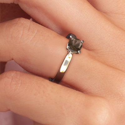 Dieser Ring aus 14 Karat Weißgold heißt Mignon cus 1 und hat 5 mm Rauchquarz. Dieser gerade 14 Karat Weißgold Solitär Verlobungsring ist ein wahres Kunstwerk! Die Ornamente werden mit viel Geduld und großer Leidenschaft gefertigt. Um diesen Ring mit großer Präzision zu schaffen, erfordert dieses Handwerk ein scharfes Auge und eine geschickte Hand. Eine Herausforderung, die bei unseren erfahrenen Juwelieren ein Feuer entfacht. Die exquisiten Rauchquarz sind auf eine besondere Art und Weise gefasst, so dass sie noch mehr hervorstechen. Dies verleiht dem Ring eine noch glamourösere Erscheinung. Der Ring an sich ist schon wegen der Edelsteine einzigartig, die wir speziell für diesen Ring auswählen. Obendrein wählen Sie die Edelmetalle aus, mit denen Ihr einzigartiger Ring für die außergewöhnlichste Frau Ihres Lebens gemacht wird! Jedes Schmuckstück wird hergestellt von einem Team leidenschaftlicher Goldschmiede und Schmuckdesigner. Das wird Ihr Kronjuwel unbedingt zu einem Blickfang machen.Haben Sie ein bestimmtes Budget? Sie können uns gerne kontaktieren, damit wir Ihre Optionen besprechen können. Wir bieten unsere Verlobungsringe zum garantiert besten Preis, denn wir fertigen sie auf Bestellung. Solche Preise finden Sie nirgendwo anders!Verschiedene Arten von neuen Ringen werden täglich von unserem Team angefertigt. Vielleicht haben Sie irgendwo einen Solitär Verlobungsring gefunden. Einen, den Sie Ihrem Liebsten schenken möchten. Bitte zögern Sie nicht, unseren Schmuckdesignern Ihre Gedanken und Ihr Design zu zeigen. Wir würden gerne Ihr Design in einen Luxus Verlobungsring verwandeln. Sie können die Entwicklungen Ihres Ringdesigns verfolgen, da wir sehr detaillierte 3D-Zeichnungen verwenden. Darüber hinaus können Sie einen Dummy des Designs bestellen. Ein Dummy ist ein Kunststoffring, der nach Ihrem Ringdesign gestaltet werden kann. Sie können ihn anprobieren und prüfen, ob der Verlobungsring Ihren Vorstellungen entspricht. Wir senden Ihnen gerne ein unverbindliches Angebot zu einem fairen Preis/Leistungsverhältnis. Das Angebot wird Sie angesichts der Qualität des Rings und der Edelsteine verblüffen.Um es einfacher zu machen, bieten wir eine kostenlose 30-tägige Rücksendung.