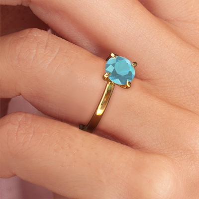 Der oben gezeigte Verlobungsring wird Crystal RND 1 genannt. Wir nennen das einen Solitär-Ring, denn er hat einen einzelnen Edelstein. Es ist ein 14 Karat Gold Verlobungsring, mit 6.8 mm rund Blau Topas. Dieser klassische Gold Solitär-Ring mit exquisitem, rund Blau Topas ist ein schöner Verlobungsring. Die offenen Krappen ermöglichen, dass Licht aus mehr Winkeln auf den Edelstein trifft. Der Ring besticht auch durch die hohe Positionierung des Edelsteins. Denn Blau Topas symbolisieren wahre Liebe und Reinheit und machen sie damit zum perfekten Geschenk für die Liebe Ihres Lebens. Das Symbol der ewigen Liebe ist das Herzstück dieses Solitär-Rings. Wie ein Blau Topas haben auch alle anderen Arten von Edelmetallen ihre eigenen, zugeschriebenen symbolischen Bedeutungen. Diese Solitär Verlobungsring können Sie selbst zusammenstellen in verschiedenen Edelmetall Kombinationen. Dieser hat die Kombination 14 Karat Gold mit Gold. Jedes Schmuckstück wird hergestellt von einem Team leidenschaftlicher Goldschmiede und Schmuckdesigner. Das wird Ihr Kronjuwel unbedingt zu einem Blickfang machen.Nach Erhalt Ihrer Bestellung beginnen unsere Goldschmiede mit Leidenschaft den kreativen Prozess und fertigen Ihren Verlobungsring in unserem eigenen Studio. Da wir keine großen Lager haben, werden diese Kosten nicht an Sie weitergegeben. Unsere Preisgestaltung ist der Beweis dafür! Wir bieten Schmuck zum niedrigsten Preis, garantiert.Haben Sie einen bestimmten Ring im Sinn? Eines, dass Sie irgendwo gesehen haben. Bitte zögern Sie nicht, uns zu sagen, was Sie wollen und wir werden Ihr Design in einen Einzigartigen Verlobungsring verwandeln. Sie können die Entwicklungen Ihres Ringdesigns verfolgen, da wir 3D-Zeichnungen verwenden. Das gibt Ihnen eine realistische Vorschau Ihres Designs. Wir senden Ihnen gerne ein unverbindliches Angebot zu einem fairen Preis/Leistungsverhältnis. Es wird Sie erstaunen.Um es einfacher zu machen, bieten wir eine kostenlose 30-tägige Rücksendung.