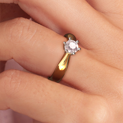 Der oben gezeigte Verlobungsring wird Fay genannt. Wir nennen das einen Solitär-Ring, denn er hat einen einzelnen Edelstein. Es ist ein 14 Karat Gold Verlobungsring, mit 5 mm rund Morganit Champagner. Dieser traditionell Gold Solitär-Ring mit exquisitem, rund Morganit Champagner ist ein schöner Verlobungsring. Die offenen Krappen ermöglichen, dass Licht aus mehr Winkeln auf den Edelstein trifft. Der Ring besticht auch durch die hohe Positionierung des Edelsteins. Denn Morganit Champagner symbolisieren wahre Liebe und Reinheit und machen sie damit zum perfekten Geschenk für die Liebe Ihres Lebens. Das Symbol der ewigen Liebe ist das Herzstück dieses Solitär-Rings. Wie ein Morganit Champagner haben auch alle anderen Arten von Edelmetallen ihre eigenen, zugeschriebenen symbolischen Bedeutungen. Diese Solitär Verlobungsring können Sie selbst zusammenstellen in verschiedenen Edelmetall Kombinationen. Dieser hat die Kombination 14 Karat Gold mit Weißgold. Jedes Schmuckstück wird von unseren Meister-Goldschmieden in unserem eigenen Studio für Sie gefertigt.Durch die Kombination modernster Technik mit uralter Handwerkskunst können wir alle Verlobungsringe in unserem eigenen Studio anfertigen. Jedes Schmuckstück wird auf Anfrage gefertigt. Das ist vorteilhaft, weil wir Ihnen dadurch einen Preis anbieten können, den Sie nirgendwo anders finden.Haben Sie irgendwo einen bestimmten Verlobungsring gefunden, den Sie Ihrem Liebsten schenken möchten? Sie können uns gerne sagen, was Sie wollen und wir werden Ihr Design in einen Einzigartigen traditionell Verlobungsring verwandeln. Sie können die Entwicklungen Ihres Ringdesigns verfolgen, da wir 3D-Zeichnungen verwenden. Das gibt Ihnen eine realistische Vorschau, wie Ihr Design aussehen wird. Sie können auch einen Dummy vorbestellen. Ein Dummy ist ein Kunststoffring, der nach Ihrem Ringdesign gestaltet werden kann. Sie können ihn anprobieren und prüfen, ob seine Breite und Größe für Sie geeignet sind. Wir senden Ihnen gerne ein unverbindliches Angebot zu einem fairen Preis/Leistungsverhältnis. Sie werden in Anbetracht der Qualität des Rings und der Edelsteine überrascht sein.Um es einfacher zu machen, bieten wir eine kostenlose 30-tägige Rücksendung.
