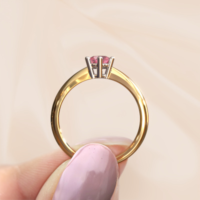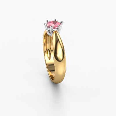 Der oben gezeigte Verlobungsring wird Fay genannt. Wir nennen das einen Solitär-Ring, denn er hat einen einzelnen Edelstein. Es ist ein 14 Karat Gold Verlobungsring, mit 5 mm rund Turmalin rosa. Dieser traditionell Gold Solitär-Ring mit exquisitem, rund Turmalin rosa ist ein schöner Verlobungsring. Die offenen Krappen ermöglichen, dass Licht aus mehr Winkeln auf den Edelstein trifft. Der Ring besticht auch durch die hohe Positionierung des Edelsteins. Denn Turmalin rosa symbolisieren wahre Liebe und Reinheit und machen sie damit zum perfekten Geschenk für die Liebe Ihres Lebens. Das Symbol der ewigen Liebe ist das Herzstück dieses Solitär-Rings. Wie ein Turmalin rosa haben auch alle anderen Arten von Edelmetallen ihre eigenen, zugeschriebenen symbolischen Bedeutungen. Diese Solitär Verlobungsring können Sie selbst zusammenstellen in verschiedenen Edelmetall Kombinationen. Dieser hat die Kombination 14 Karat Gold mit Weißgold. Jedes Schmuckstück wird von unseren Meister-Goldschmieden in unserem eigenen Studio für Sie gefertigt.Durch die Kombination modernster Technik mit uralter Handwerkskunst können wir alle Verlobungsringe in unserem eigenen Studio anfertigen. Jedes Schmuckstück wird auf Anfrage gefertigt. Das ist vorteilhaft, weil wir Ihnen dadurch einen Preis anbieten können, den Sie nirgendwo anders finden.Haben Sie irgendwo einen bestimmten Verlobungsring gefunden, den Sie Ihrem Liebsten schenken möchten? Sie können uns gerne sagen, was Sie wollen und wir werden Ihr Design in einen Einzigartigen traditionell Verlobungsring verwandeln. Sie können die Entwicklungen Ihres Ringdesigns verfolgen, da wir 3D-Zeichnungen verwenden. Das gibt Ihnen eine realistische Vorschau, wie Ihr Design aussehen wird. Sie können auch einen Dummy vorbestellen. Ein Dummy ist ein Kunststoffring, der nach Ihrem Ringdesign gestaltet werden kann. Sie können ihn anprobieren und prüfen, ob seine Breite und Größe für Sie geeignet sind. Wir senden Ihnen gerne ein unverbindliches Angebot zu einem fairen Preis/Leistungsverhältnis. Sie werden in Anbetracht der Qualität des Rings und der Edelsteine überrascht sein.Um es einfacher zu machen, bieten wir eine kostenlose 30-tägige Rücksendung.