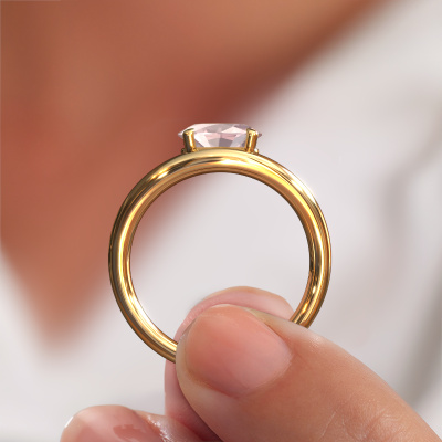 Dieser Verlobungsring aus 14 Karat Gold mit Morganit Champagner heißt Floor OVL. Halten Sie mit den neuesten Modetrends Schritt? Möchten Sie einen einzigartigen Verlobungsring, der zu Ihrem Lebensstil passt? Dieser Drehungen Verlobungsring ist ein