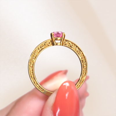 Dieser zierliche Verlobungsring aus 14 Karat Gold heißt Claudette 1 und hat 5 mm Pink Saphir. Ist Ihre Freundin von Vintage begeistert? Dann wird dieser Gold Verlobungsring sicherlich perfekt zu ihrem Stil passen. Ein trendiger Ring mit einem Hauch von klassischem Schmuck. Ein wirklich atemberaubendes, romantisches Design! Vor allem, wenn Sie den Ring nach ihren Wünschen anpassen. Dieser Keltische Solitär Verlobungsring ist mit atemberaubenden Pink Saphir besetzt. Wie Sie sehen können, sind Sie der Boss bei der Auswahl des Edelsteins, der am besten zu Ihrer Freundin passt. Jeder Edelstein wird sorgfältig von unseren Händlern ausgewählt, die auf der ganzen Welt verteilt sind. Nichts als die besten Edelsteine für unseren erfahrenen Juwelier! Schließlich ist es seine Krönung! Jedes Schmuckstück ist einzigartig in jeder Hinsicht! Einfach nach Ihren Wünschen anzupassen.Nachdem Sie Ihre Bestellung aufgegeben haben, beginnen unsere Goldschmiede mit dem kreativen Prozess der Herstellung Ihres Claudette 1 Verlobungsring. Wir haben keine Lager. Das ist vorteilhaft, da diese Kosten nicht an Sie weitergegeben werden. Daher sind wir in der Lage, Schmuck zu außergewöhnlich niedrigen Preisen anzubieten.Unser Team fügt unserer Online-Kollektion täglich neue Designs hinzu. Unsere Designer und Goldschmiede arbeiten zusammen, um das beste Design zu kreieren. Wir bemühen uns, eine vielfältige Kollektion von Schmuckstücken anzubieten. Vielleicht haben Sie ein bestimmtes Design im Sinn. Eines, dass Sie irgendwo gesehen haben. Gerne geben wir Ihnen eine kostenlose Beratung. Wir machen Ihnen ein Angebot, basierend auf einem fairen Preis/Leistungsverhältnis, das Sie verblüffen wird.Um es einfacher zu machen, bieten wir eine kostenlose 30-tägige Rücksendung.