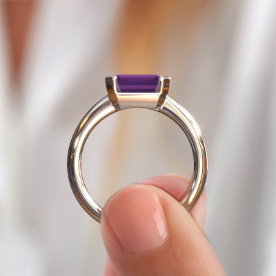 Der oben gezeigte Verlobungsring wird Tayler EME genannt. Wir nennen das einen Solitär-Ring, denn er hat einen einzelnen Edelstein. Es ist ein Platin Verlobungsring, mit 8x6 mm smaragd schliff Amethyst. Dieser moderne Platin Solitär-Ring mit exquisitem, smaragd schliff Amethyst ist ein schöner Verlobungsring. Die offenen Krappen ermöglichen, dass Licht aus mehr Winkeln auf den Edelstein trifft. Der Ring besticht auch durch die hohe Positionierung des Edelsteins. Denn Amethyst symbolisieren wahre Liebe und Reinheit und machen sie damit zum perfekten Geschenk für die Liebe Ihres Lebens. Das Symbol der ewigen Liebe ist das Herzstück dieses Solitär-Rings. Wie ein Amethyst haben auch alle anderen Arten von Edelmetallen ihre eigenen, zugeschriebenen symbolischen Bedeutungen. Diese Solitär Verlobungsring können Sie selbst zusammenstellen in verschiedenen Edelmetall Kombinationen. Dieser hat die Kombination Platin mit Platin. Jedes Schmuckstück ist um Ihrem Finger Glanz zu verleihen. Jeder Ring wird von unseren Goldschmieden liebevoll von Hand gefertigt.Nach Erhalt Ihrer Bestellung beginnen unsere Goldschmiede mit Leidenschaft den kreativen Prozess und fertigen Ihren Verlobungsring in unserem eigenen Studio. Da wir keine großen Lager haben, werden diese Kosten nicht an Sie weitergegeben. Unsere Preisgestaltung ist der Beweis dafür! Wir bieten Schmuck zum niedrigsten Preis, garantiert.Unsere Designer und Goldschmiede arbeiten jeden Tag zusammen und versuchen, neue Schmuckstücke zu kreieren. Vielleicht haben Sie irgendwo einen schönen, moderne Verlobungsring gefunden, nach dem Ihr einzigartiger Ring gestaltet werden kann. Setzen Sie sich mit uns in Verbindung. Wir machen Ihnen ein Angebot, basierend auf einem fairen Preis/Leistungsverhältnis, das Sie begeistern wird.Um es einfacher zu machen, bieten wir eine kostenlose 30-tägige Rücksendung.