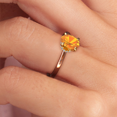Der oben gezeigte Verlobungsring wird Crystal OVL 3 genannt. Wir nennen das einen Solitär-Ring, denn er hat einen einzelnen Edelstein. Es ist ein 14 Karat Roségold Verlobungsring, mit 7,5x5,5 mm oval Citrin. Dieser einzigartige Roségold Solitär-Ring mit exquisitem, oval Citrin ist ein schöner Verlobungsring. Die offenen Krappen ermöglichen, dass Licht aus mehr Winkeln auf den Edelstein trifft. Der Ring besticht auch durch die hohe Positionierung des Edelsteins. Denn Citrin symbolisieren wahre Liebe und Reinheit und machen sie damit zum perfekten Geschenk für die Liebe Ihres Lebens. Das Symbol der ewigen Liebe ist das Herzstück dieses Solitär-Rings. Wie ein Citrin haben auch alle anderen Arten von Edelmetallen ihre eigenen, zugeschriebenen symbolischen Bedeutungen. Diese Solitär Verlobungsring können Sie selbst zusammenstellen in verschiedenen Edelmetall Kombinationen. Dieser hat die Kombination 14 Karat Roségold mit Gold. Jedes Schmuckstück wird von unseren Meister-Goldschmieden in unserem eigenen Studio für Sie gefertigt.Nach Erhalt Ihrer Bestellung beginnen unsere Goldschmiede mit Leidenschaft den kreativen Prozess und fertigen Ihren Verlobungsring in unserem eigenen Studio. Da wir keine großen Lager haben, werden diese Kosten nicht an Sie weitergegeben. Unsere Preisgestaltung ist der Beweis dafür! Wir bieten Schmuck zum niedrigsten Preis, garantiert.Unsere Designer und Goldschmiede arbeiten jeden Tag zusammen und versuchen, neue Schmuckstücke zu kreieren. Vielleicht haben Sie irgendwo einen schönen, einzigartige Verlobungsring gefunden, nach dem Ihr einzigartiger Ring gestaltet werden kann. Setzen Sie sich mit uns in Verbindung. Wir machen Ihnen ein Angebot, basierend auf einem fairen Preis/Leistungsverhältnis, das Sie begeistern wird.Um es einfacher zu machen, bieten wir eine kostenlose 30-tägige Rücksendung.